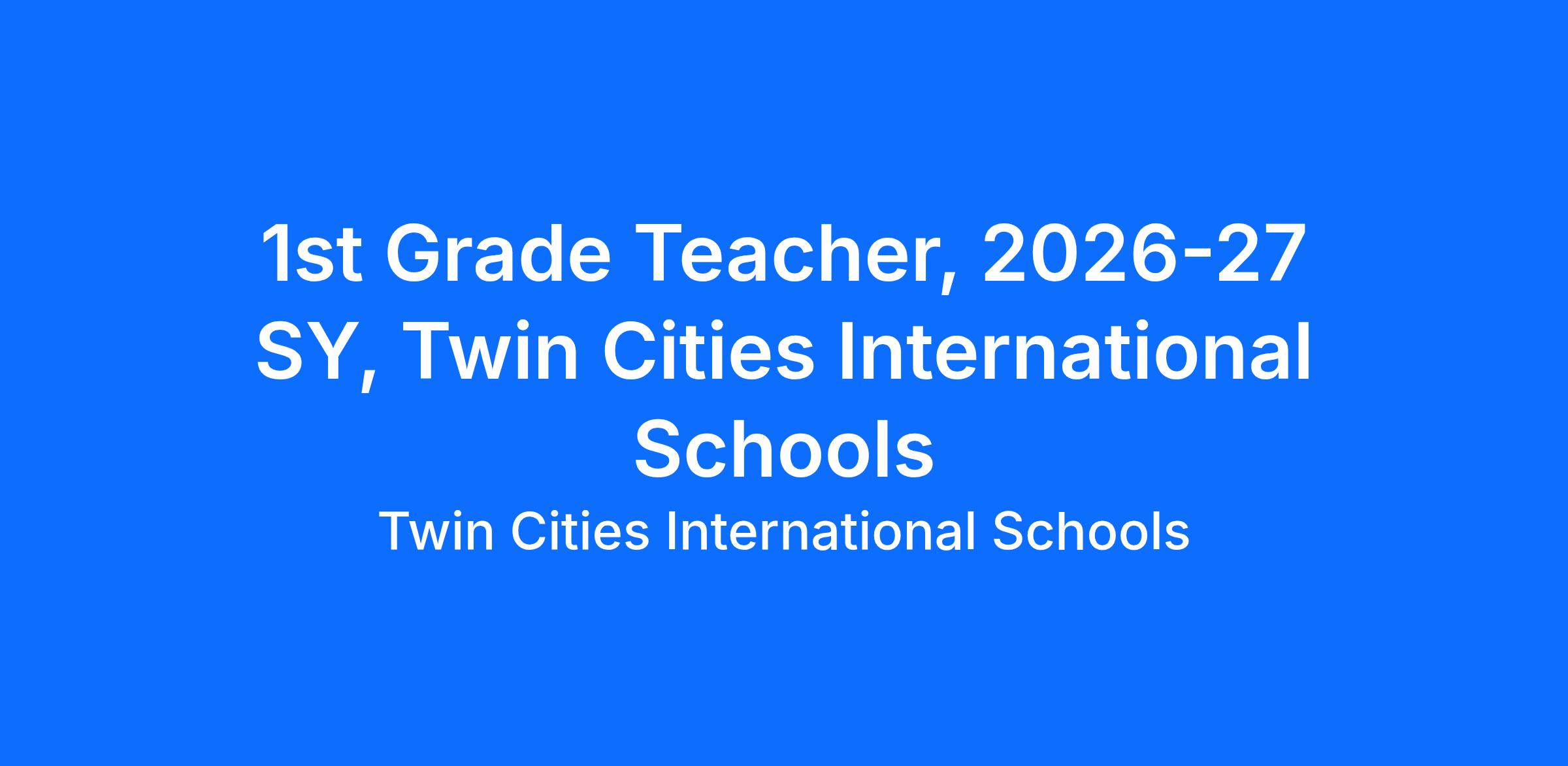 Twin Cities International Schools are currently accepting applications for a 1st Grade teaching position for the upcoming 2026-27 school year. Position start date of August 16th, 2026. Applicants must possess a valid Minnesota teaching license prior to start date. We are a public charter school located in the North Loop of Minneapolis with a student enrollment of approximately 1,000 students (K-8.)