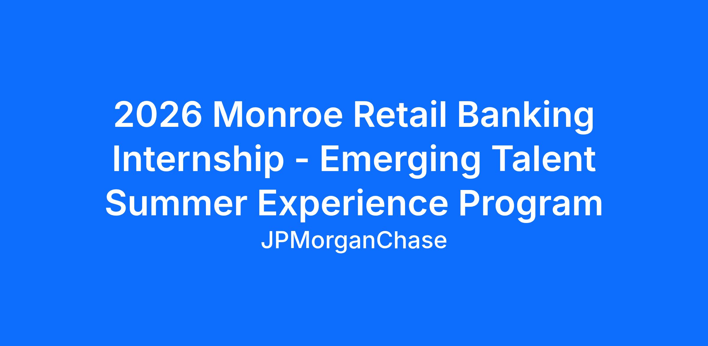 As a 2026 Emerging Talent Summer Experience Intern in JPMorganChase Consumer and Community Banking you will be offered variety, growth, and a great introduction to a range of projects and tasks. With a heritage of more than two centuries, a broad range of core and alternative strategies, and professionals operating in every major world market, we offer experience and insight that few other firms can match.