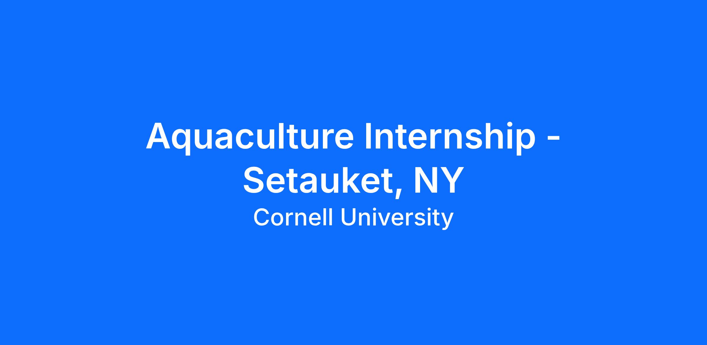 APPLICATION PROCESS: Visit CCE website at www.ccesuffolk.org/jobs and select Setauket Aquaculture Intern. Download application and questionnaire and return these with resume and cover letter to Peter Martin via email at: pm639@cornell.edu, Ashley Lopez via email at: al2645@cornell.edu, and Isabella Imbo via email at: ii64@cornell.edu no later than June 13th 2026. Applications received after this date may not be given full consideration.