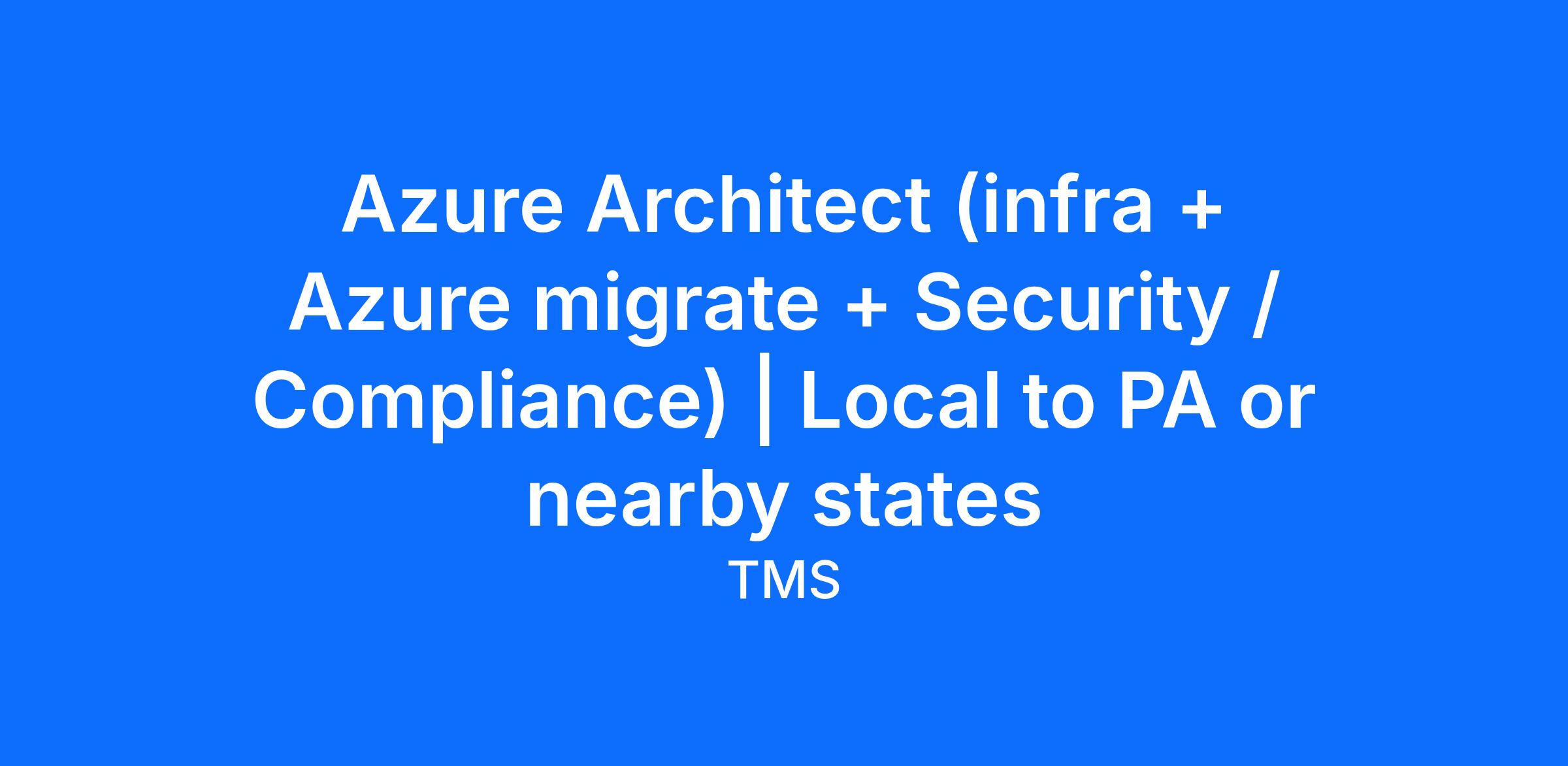 Role: Azure Architect (infra + Azure migrate + Security / Compliance)