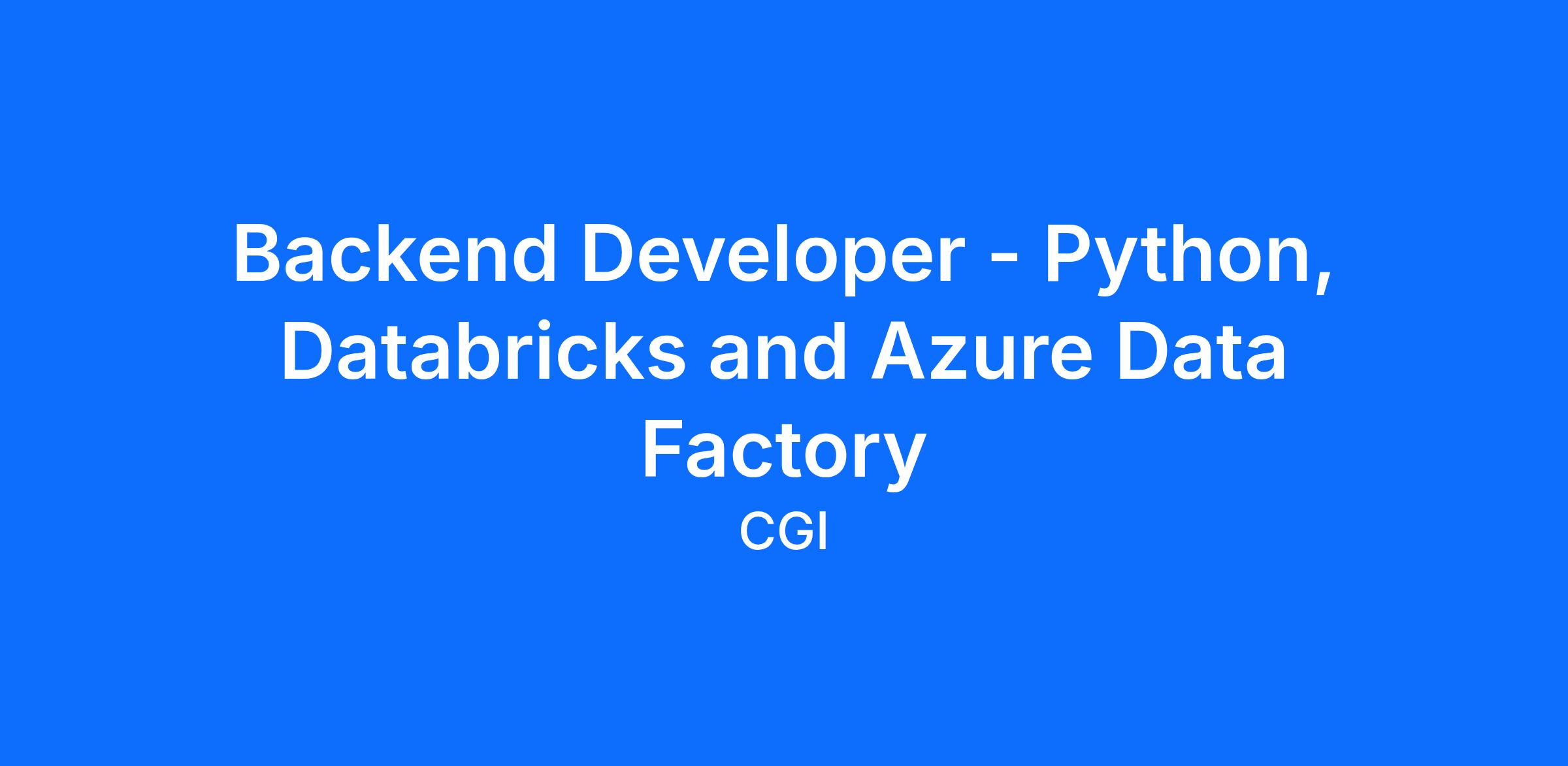 We are seeking a skilled Backend Developer with 3+ years of experience to join our Agile team and contribute to building scalable, high-performance backend systems. The ideal candidate will have strong expertise in Databricks and Azure Data Factory, along with experience in developing APIs and working with modern cloud-based architectures.