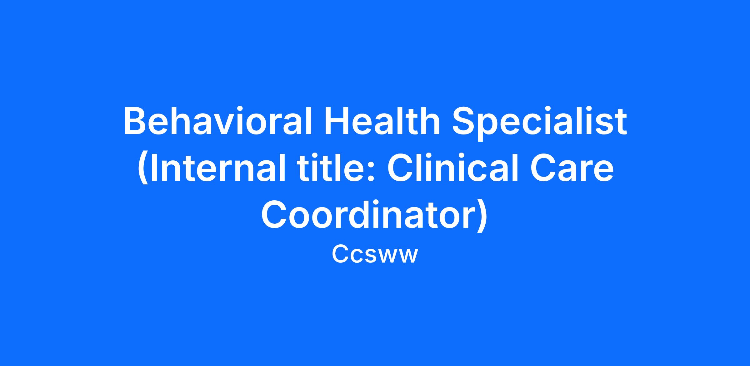 Behavioral Health Specialist (Internal title: Clinical Care Coordinator)