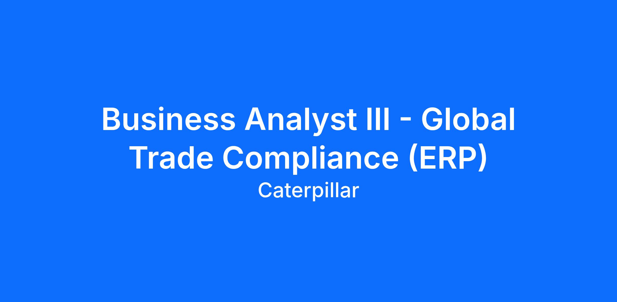 The Business Analyst III – Global Trade & Compliance (GTC) supports the development and continuous improvement of global enterprise business systems and processes, with a focus on Global Trade, Customs, and Regulatory Compliance. This role completes individual assignments of moderate complexity with guidance from more experienced business process specialists, solution architects, and provides support to global business users and subject matter experts.