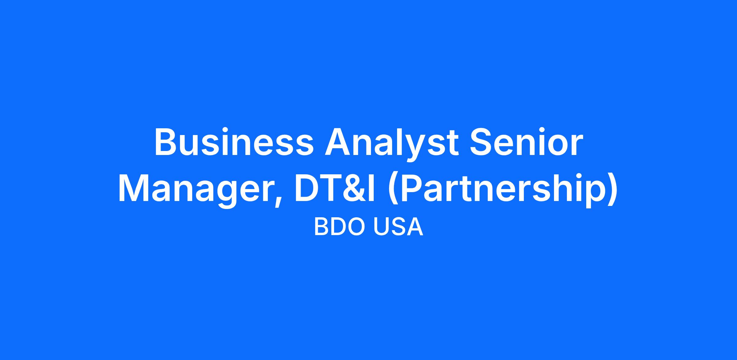 The Business Analyst Senior Manager, Digital Transformation & Innovation (DT&I) plays a pivotal role in driving the strategic initiatives that enhance our digital capabilities. The Senior Manager analyzes business processes, identifies opportunities for digital innovation, and implements solutions that align with the strategic goals of our Tax practice. The ideal candidate has a strong understanding of technology, process, and data.