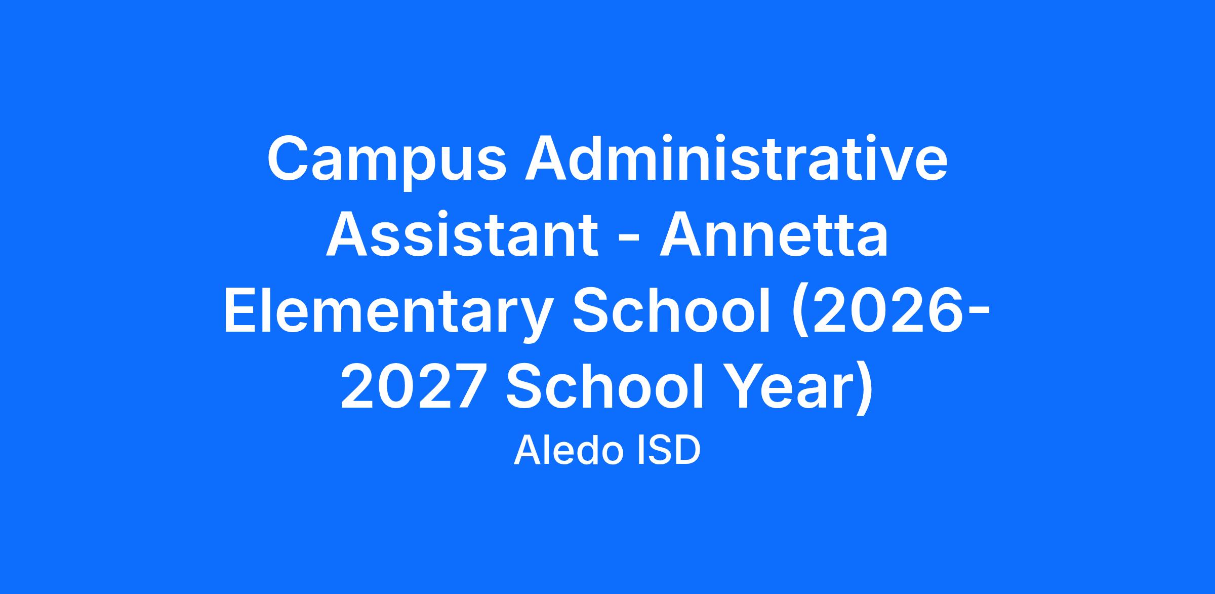 This is a Campus Administrative Assistant postion at Anneta Elementary School for the 2026-2027 School year