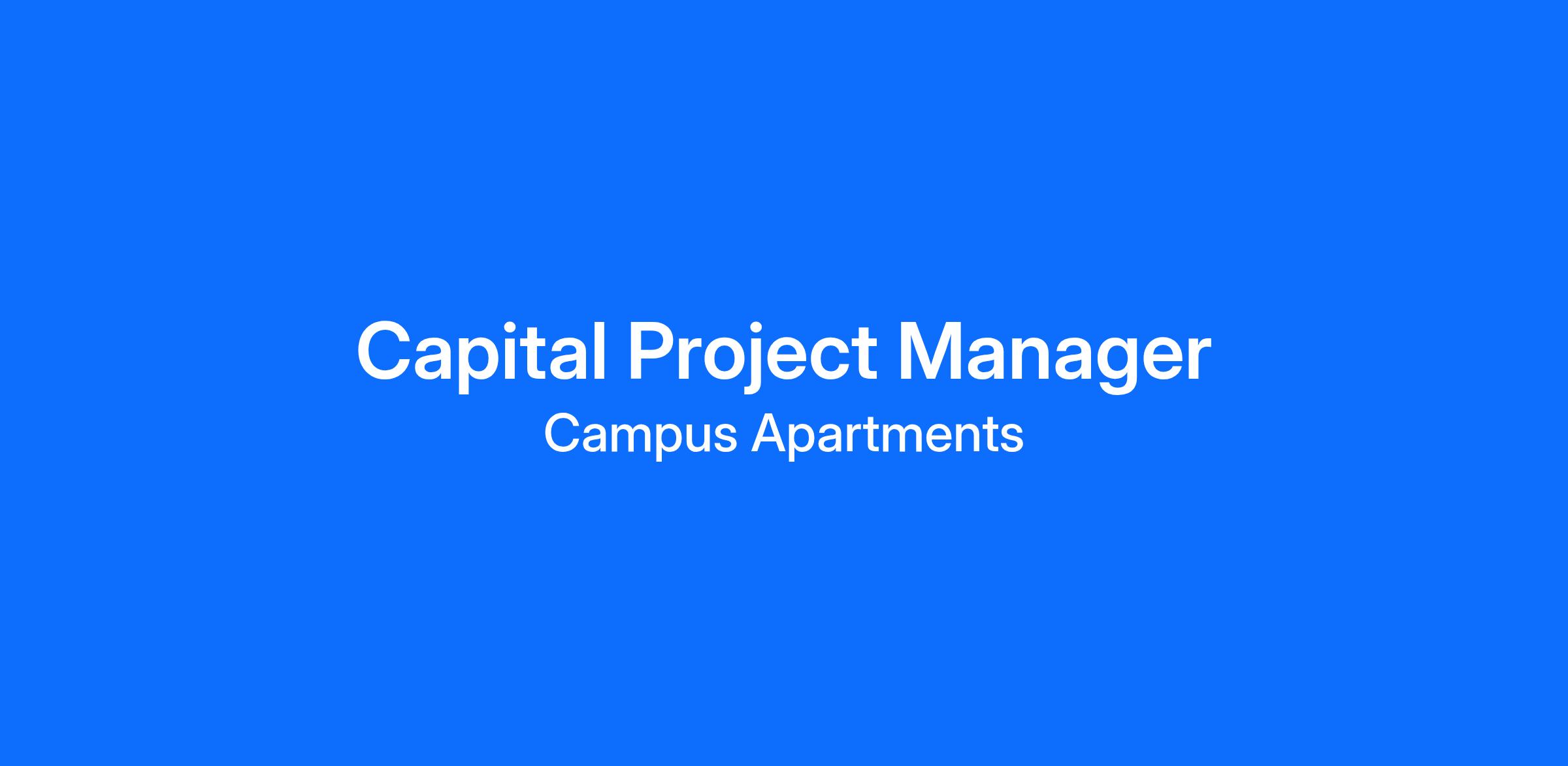 Campus Apartments is seeking a Capital Project Manager for immediate hire to bid out and manage small and large projects, and remotely teach and manage site team managers.