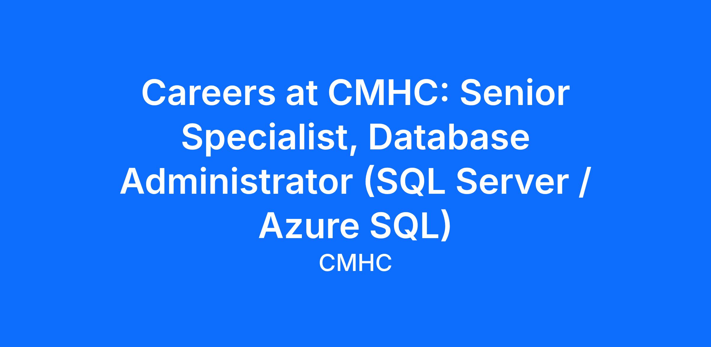 Careers at CMHC: Senior Specialist, Database Administrator (SQL Server / Azure SQL)