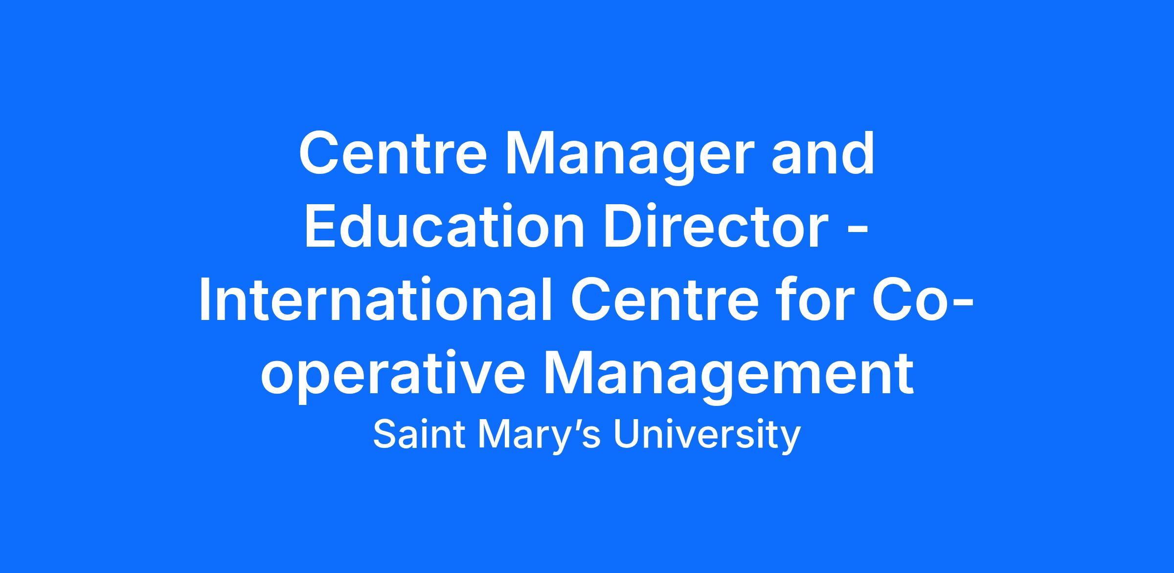 At Saint Mary's University, you will be surrounded by a talented and dedicated team of professionals committed to accessibility, diversity, and the provision of a positive and supportive learning environment. We recognize the importance of the contribution and growth of each individual in the University's success. We are currently looking to fill the position of Centre Manager and Education Director to join our dynamic and evolving International Centre for Co-operative Management.