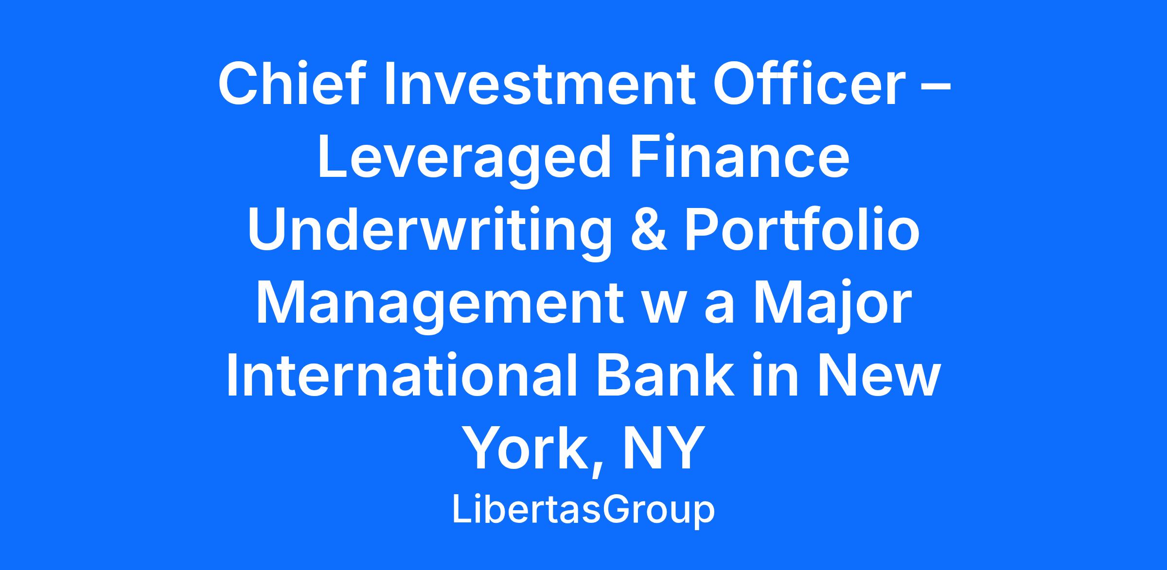 Chief Investment Officer – Leveraged Finance Underwriting & Portfolio Management w a Major International Bank in New York, NY