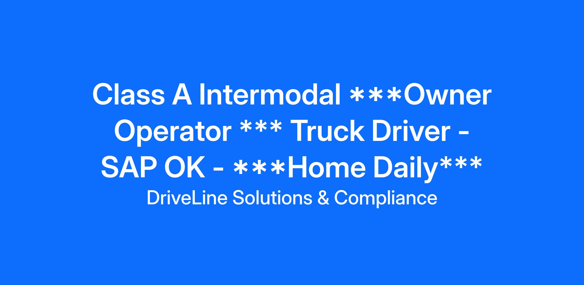 Class A Intermodal ***Owner Operator *** Truck Driver - SAP OK - ***Home Daily***