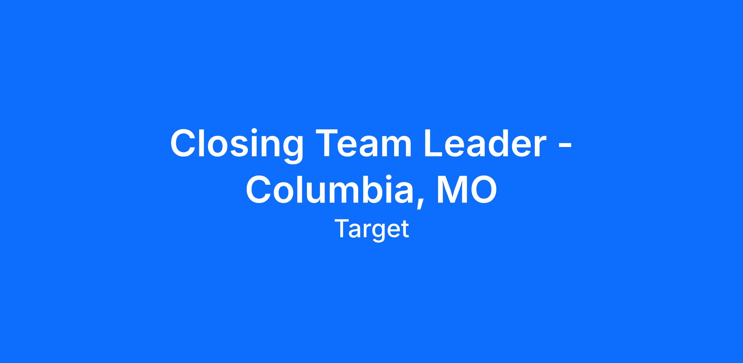 At Target, we believe in our leaders having meaningful experiences that help them build and develop skills for a career. The role of Closing Team Leader can provide you with skills and experience of: