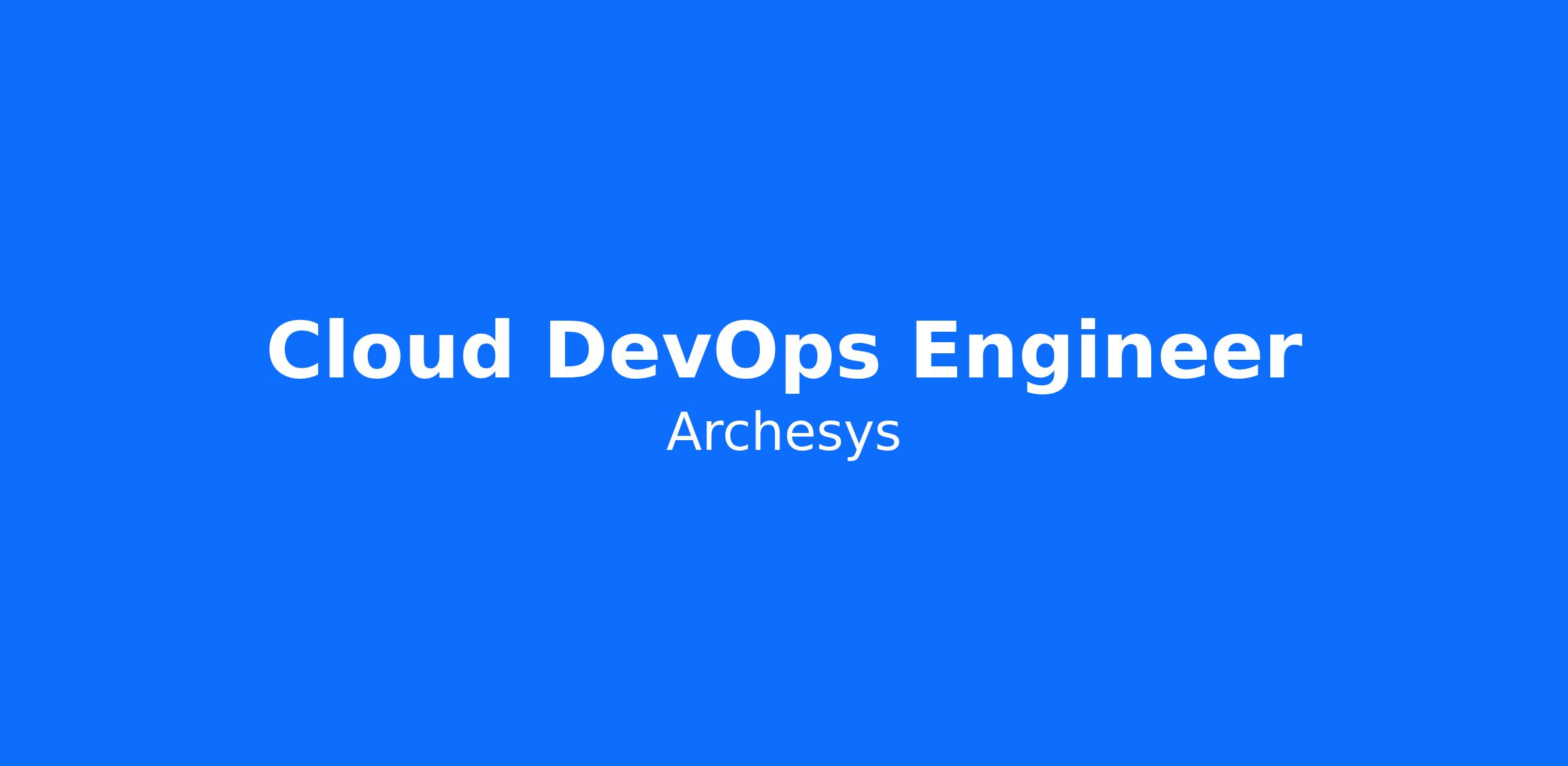 oin us at Archesys and be part of a team dedicated to delivering cutting-edge cloud solutions for clients in the public sector. Your expertise and passion for technology will help us continue to innovate and grow. We look forward to welcoming you to our team and supporting your success as a Cloud DevOps Engineer.