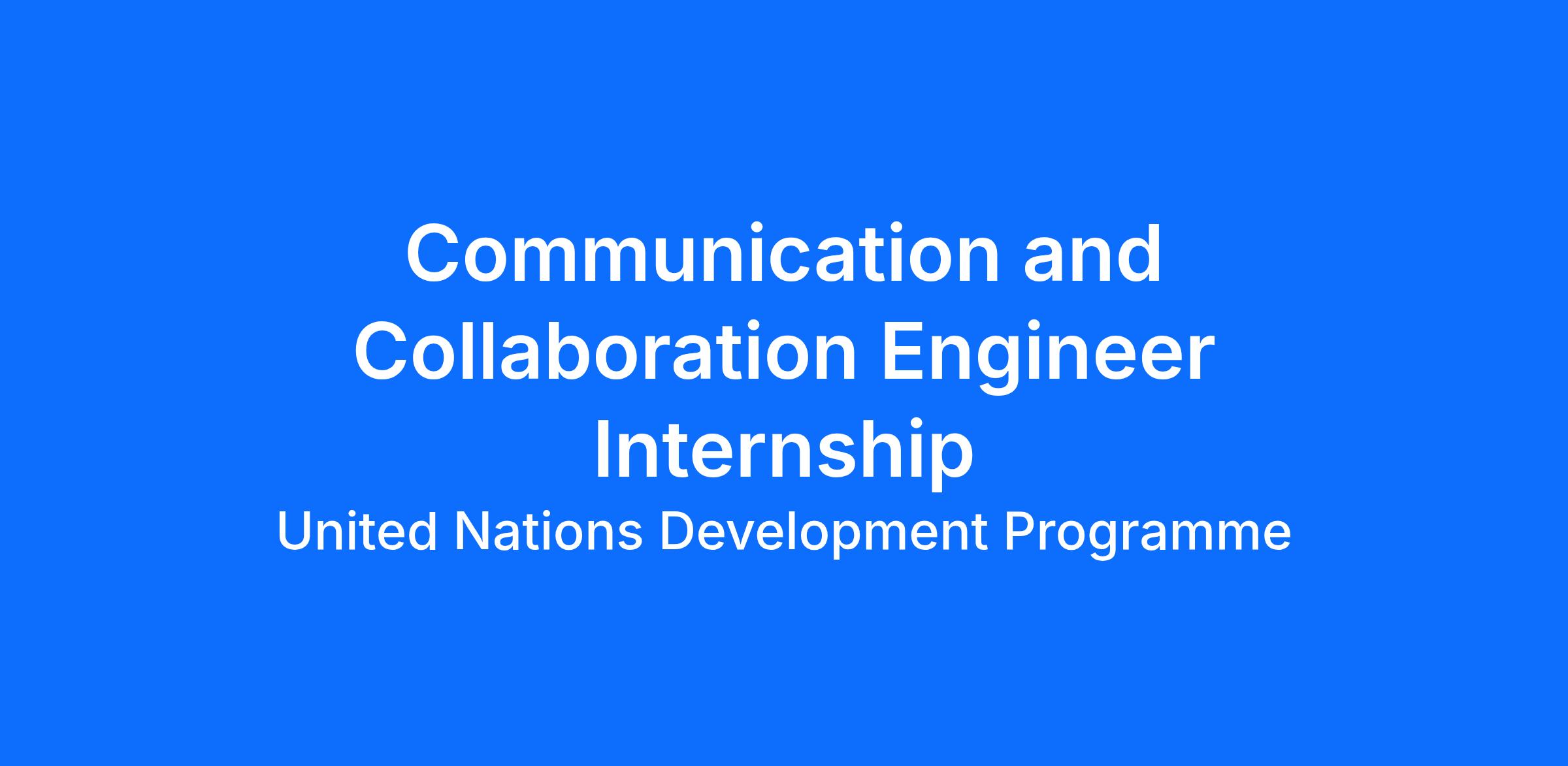 As an intern, you will be given tasks and opportunities that have a direct global impact on the development efforts of the international community. The Communication and Collaboration Engineer Internship programme enhances the academic life experience of passionate students as interns and empowers them to become socially responsible, innovative, and environmentally conscious leaders of tomorrow. By being part of our dynamic unit, you will also gain worldwide connections with other top-talented interns and UN staff from UNDP and other agencies. Our office is located at the UN Office in New-York, giving you the opportunity to interact with people outside the UNDP ITM unit.