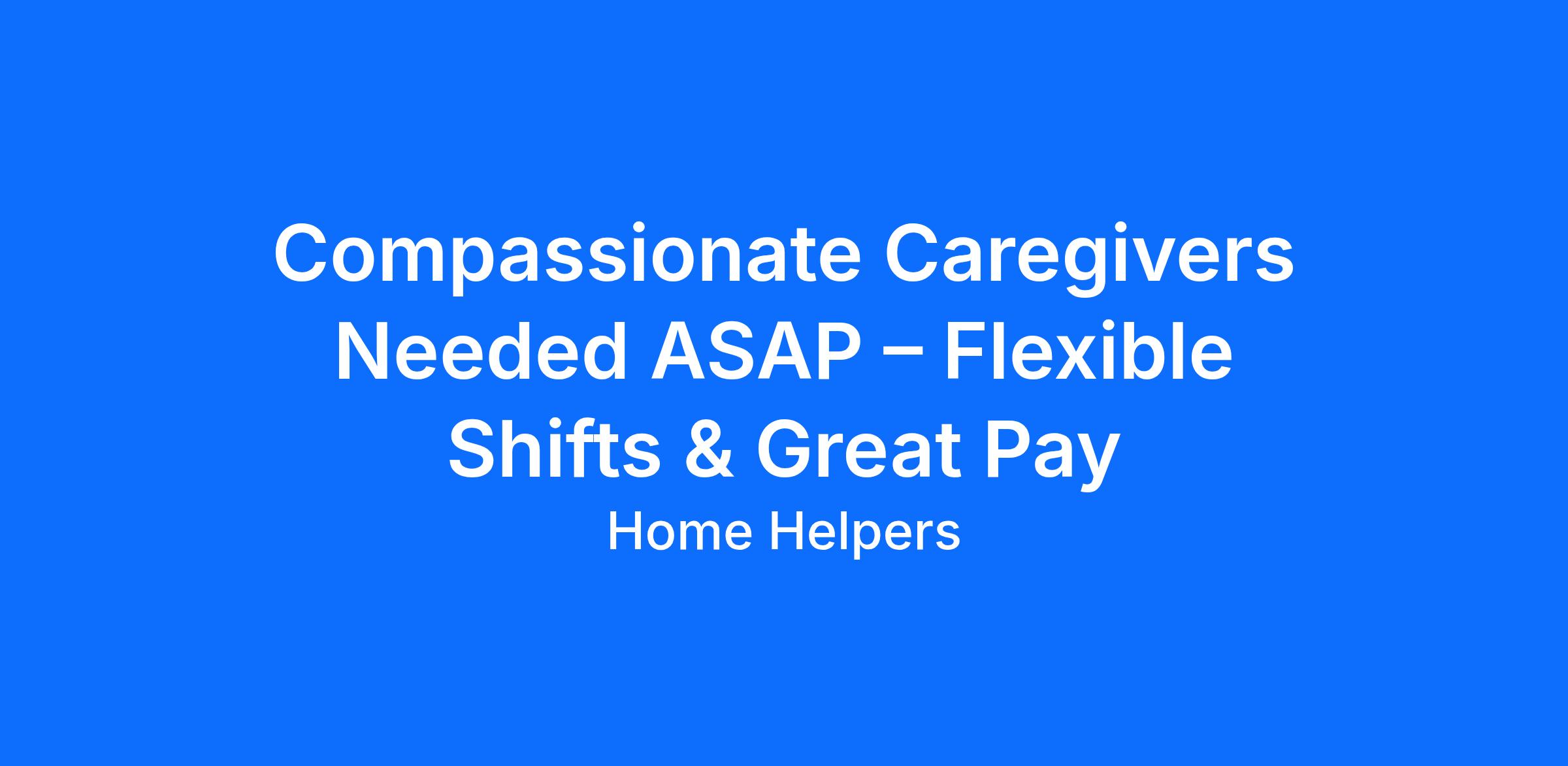 Home Helpers Home Care, is seeking a caring, compassionate Caregiver to provide service for a client in your local area. We recognize our direct care staff as our greatest asset and offer: competitive compensation, initial & ongoing training, flexible hours, and a FRIENDLY & SUPPORTIVE WORK ATMOSPHERE.
