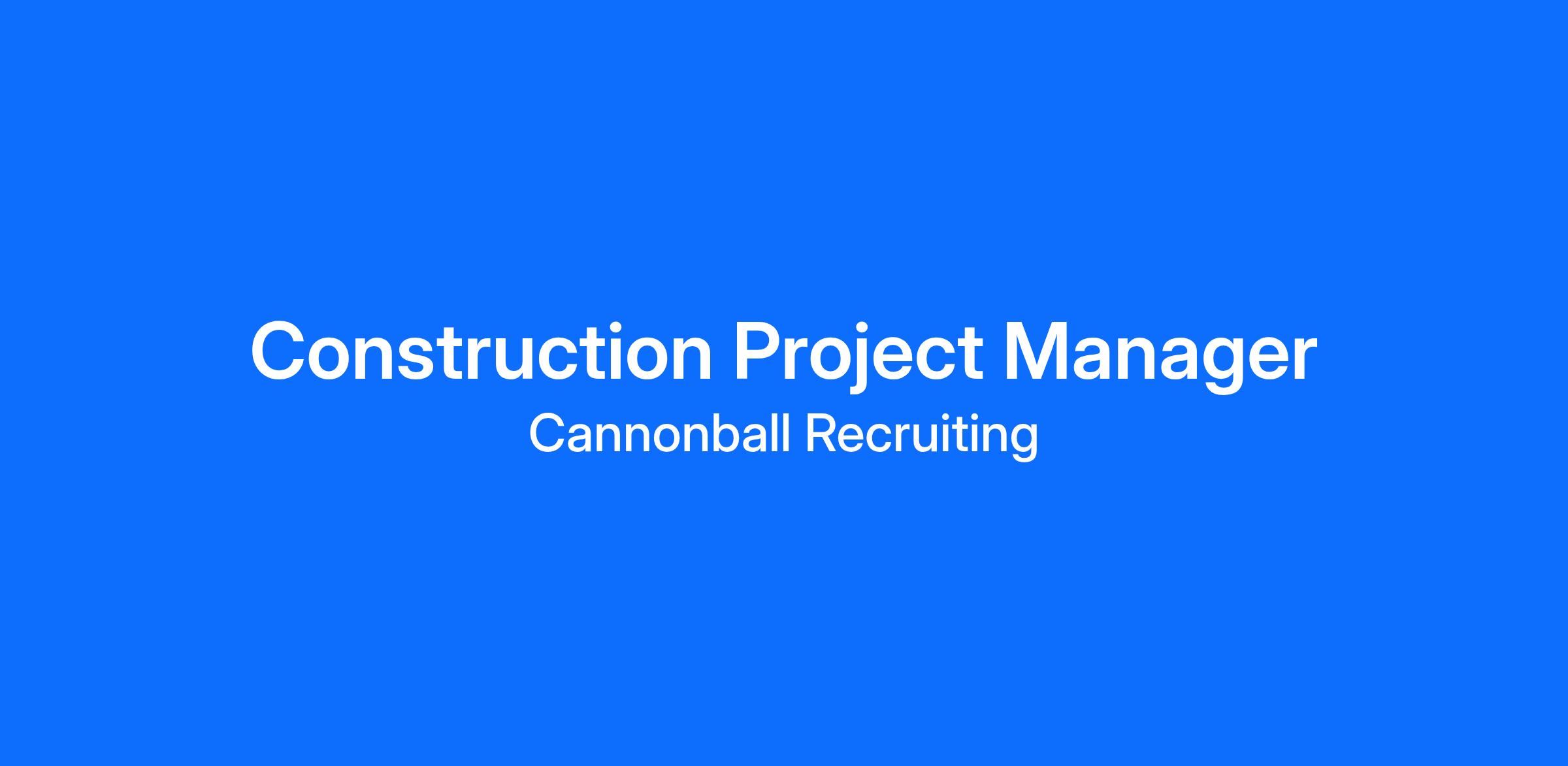 Cannonball Recruiting works in conjunction with top ENR builders around the country to identify and recruit exceptional construction professionals and pair them with organizations performing prolific projects. Compensation and benefits are commiserate with experience and skill set, however, many of the roles that we fill are at the top of industry range. We seek motivated, educated, insightful and high-performing individuals eager to make a positive difference for their teams. If you believe your attributes match our qualifications for this role, or if you are a construction professional looking for a new opportunity, we want to hear from you.