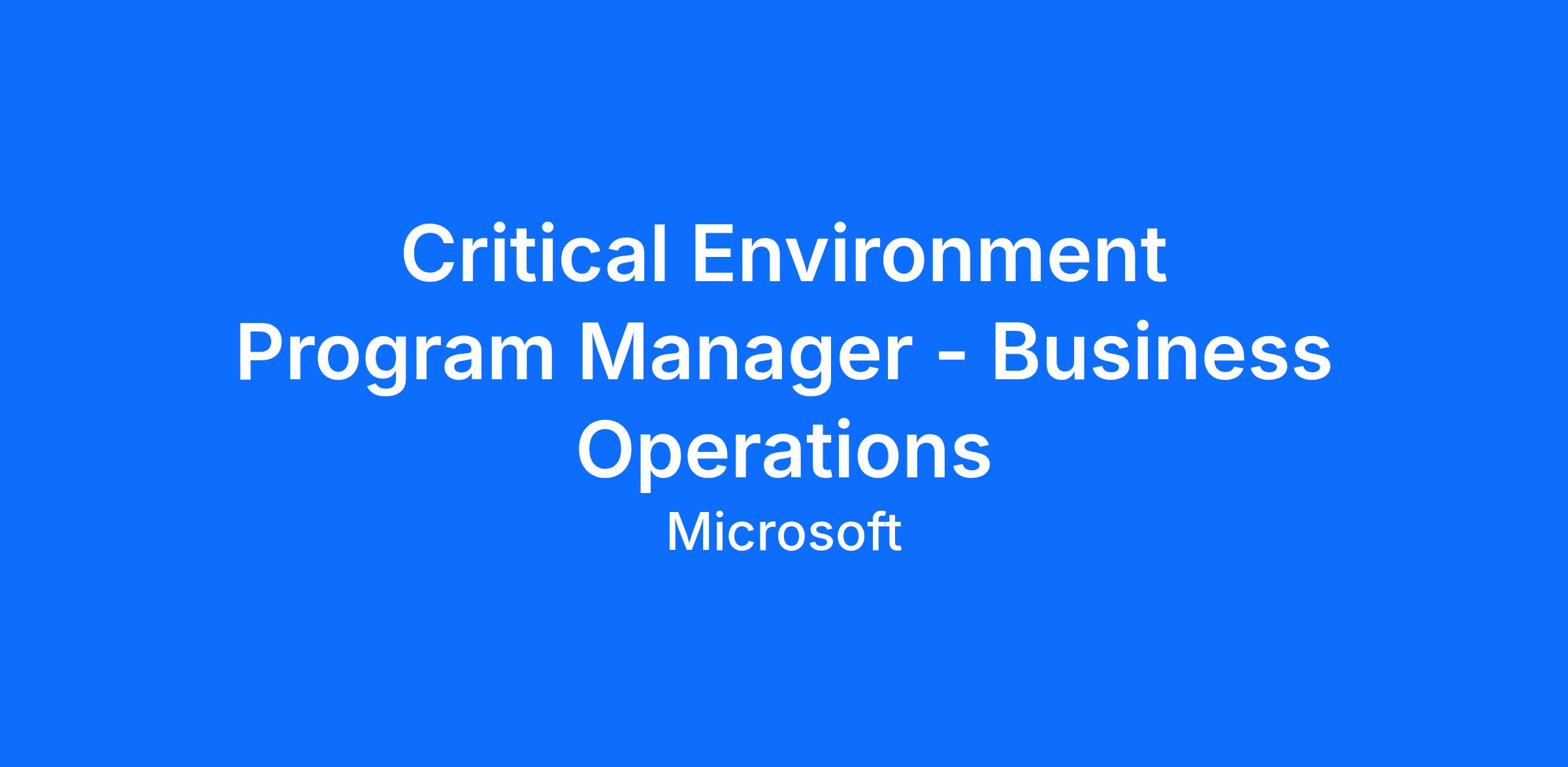 Critical Environment Program Manager - Business Operations