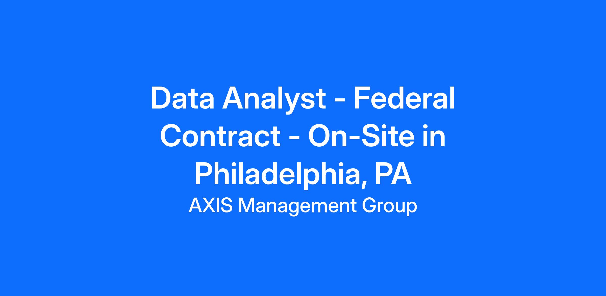Data Analyst - Government Contract - On-Site in Philadelphia, PA