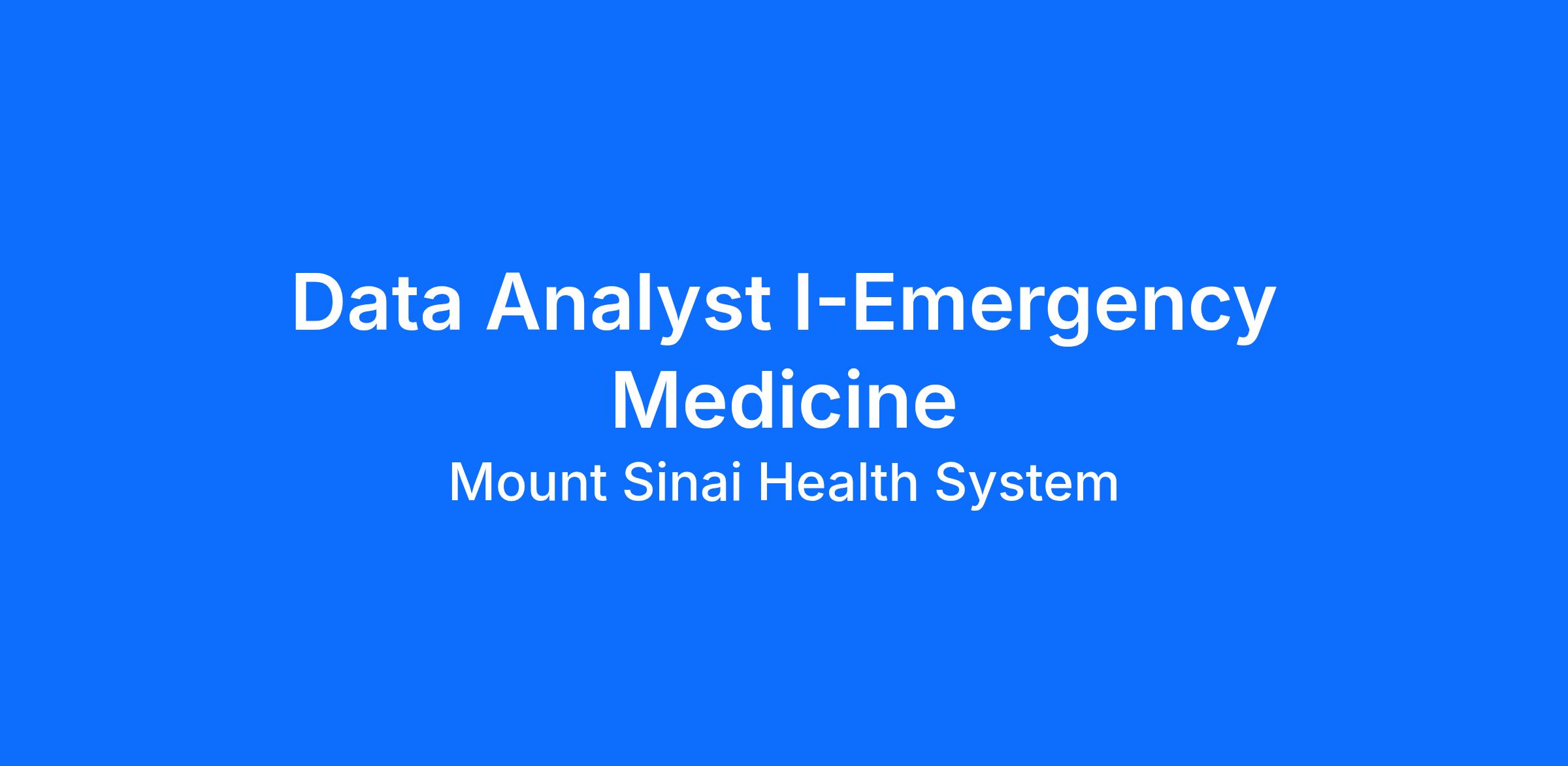 Non-Bargaining Unit, 870 - Emergency Medicine - ISM, Icahn School of Medicine