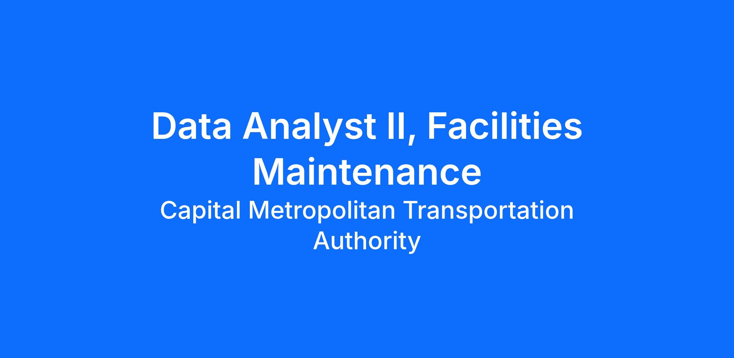 The Data Analyst II reports directly to the Manager, Facilities Operations & Maintenance. This position is responsible for administering and coordinating maintenance of new and existing software systems and technology in the administrative and financial systems for Facilities Maintenance. Serve as subject matter expert for CMTA financial modules (i.e., Oracle, Planview), SharePoint, Hexagon EAM, and others. Coordinate the budget development for Facilities Maintenance programs and manage the variance reporting during the fiscal year updating the VP, Manager, and other Departmental personnel on budget status. The Data Analyst is required to work independently under limited supervision of the Manager, Facilities Maintenance with extensive latitude in using initiative and independent judgment to support the Facilities Maintenance team administratively and financially with asset management, records management, benchmarking, quality assurance support, and other assigned facility management related duties.