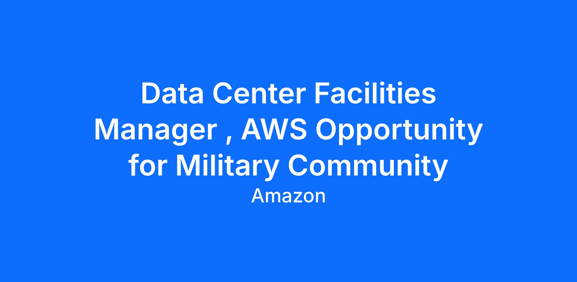Data Center Facility Manger role acts as Amazon’s front line when it comes to hands-on electrical and mechanical equipment troubleshooting. They will maintain, operate, and troubleshoot mission-critical data center facility equipment including electrical support equipment such as stand-by diesel generators and related fuel systems, 3 phase electrical systems that include but not limited to switchgear, UPS units, PDUs, and wet cell batteries and associated systems. Mechanical equipment includes CRAC units, centrifugal chillers, cooling towers/water chemical systems, air handlers and associated systems, pumps, and motors. Additional support equipment is included in the scope of the role which includes fire suppression systems, building automation systems, and general facilities equipment.