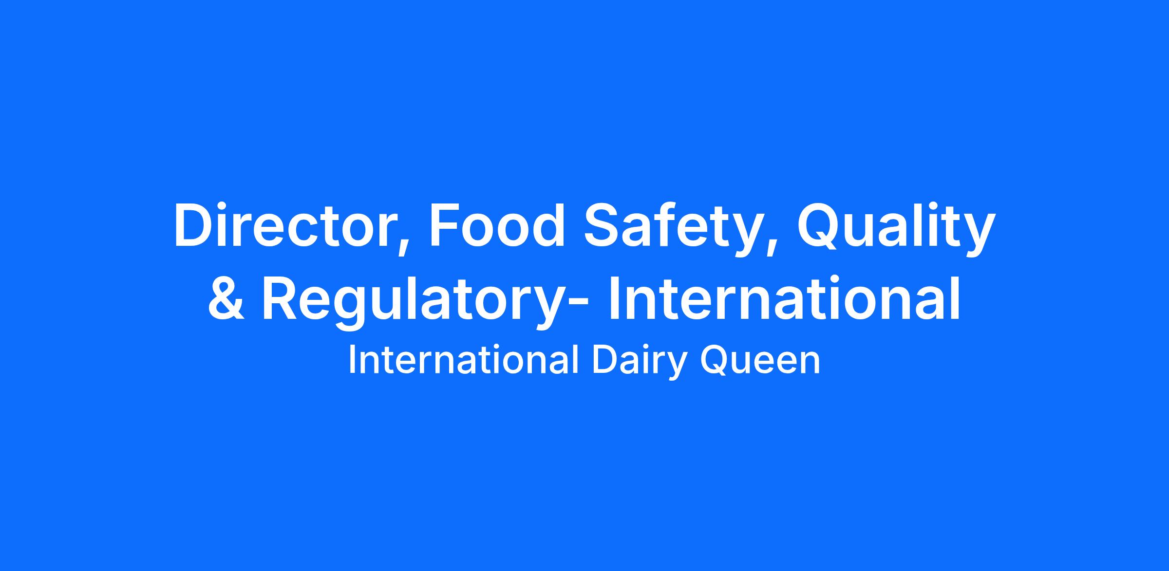 Director, Food Safety, Quality & Regulatory- International