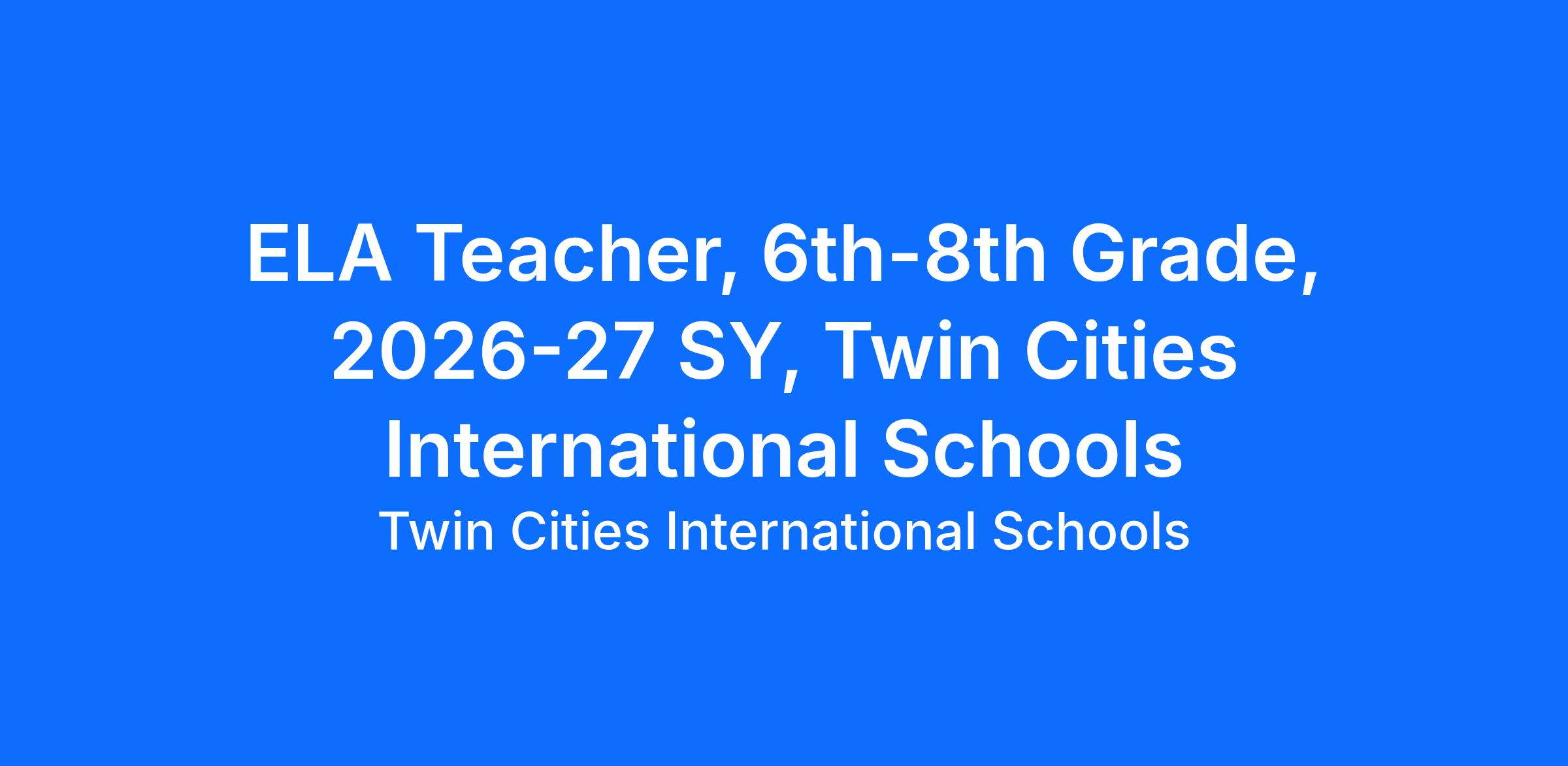Twin Cities International Schools are currently accepting applications for a 6th-8th Grade ELA (English Language Arts) teaching position for the upcoming 2026-27 school year. Position start date of August 16th, 2026. Applicants must possess a valid Minnesota teaching license prior to start date. We are a public charter school located in the North Loop of Minneapolis with a student enrollment of approximately 1,000 students (K-8.)