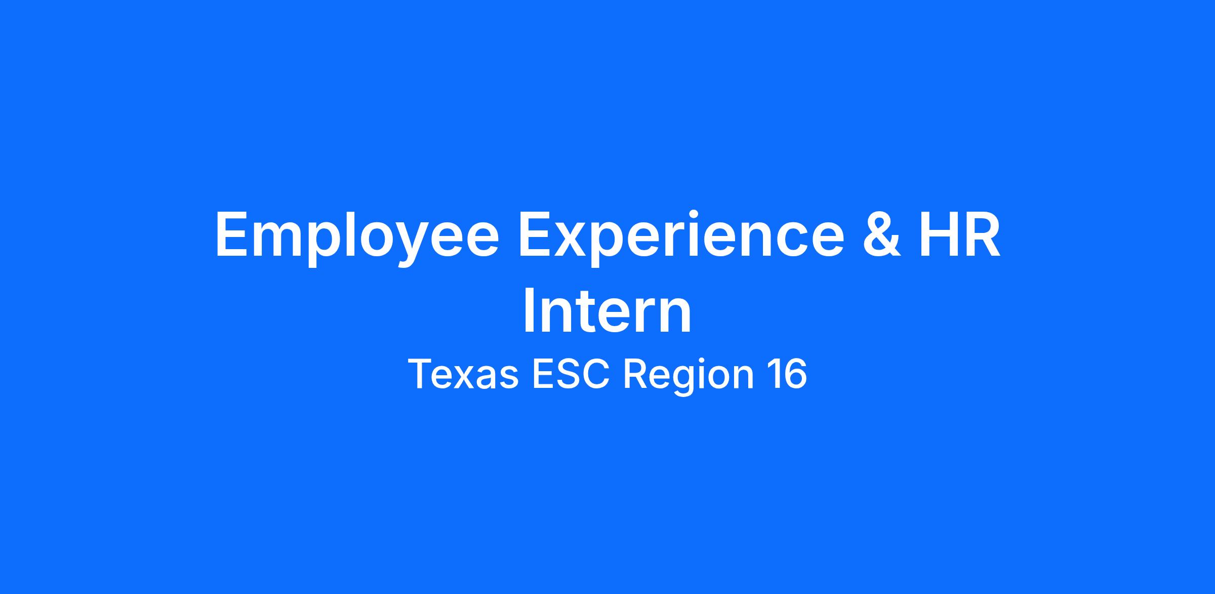 This intern position will serve as a part-time position in which the primary responsibilities will be assisting with administrative, engagement, onboarding, communications, and special projects that enhance the overall employee experience. This internship provides hands-on exposure to human resources, onboarding, employee engagement, internal communications, and organizational systems within a regional education service center. This position will be part-time, consisting of up to 15 hours per week. For students still enrolled in a college or university, the interim student hours will be flexible with the student's schedule. We are seeking active students at West Texas A&M University or Amarillo College for this position, or students who have just graduated. This internship duration is estimated to be from June through July/August.