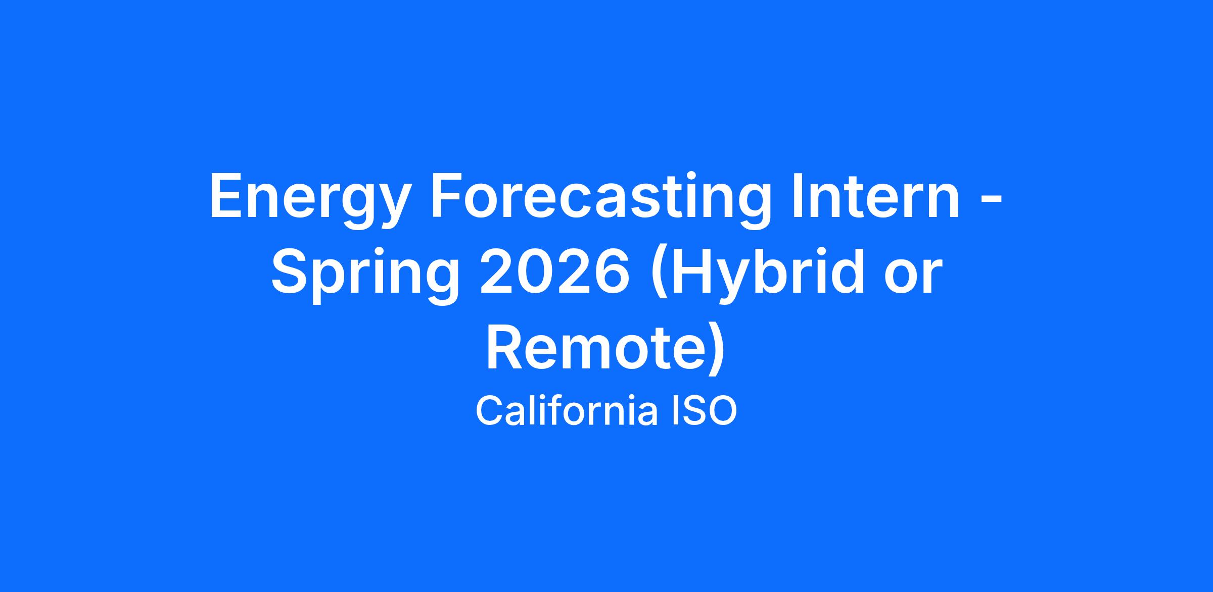 The California ISO is committed to the health, safety and work/life integration of its employees and is proud to offer flexible work arrangements. This position would be eligible to participate in a hybrid work capacity.
