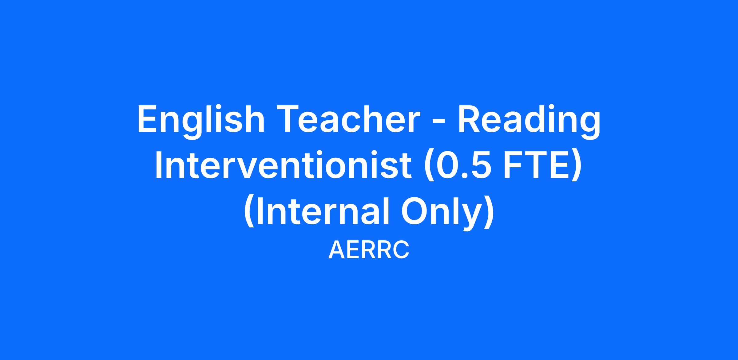 English Teacher - Reading Interventionist (0.5 FTE) (Internal Only)