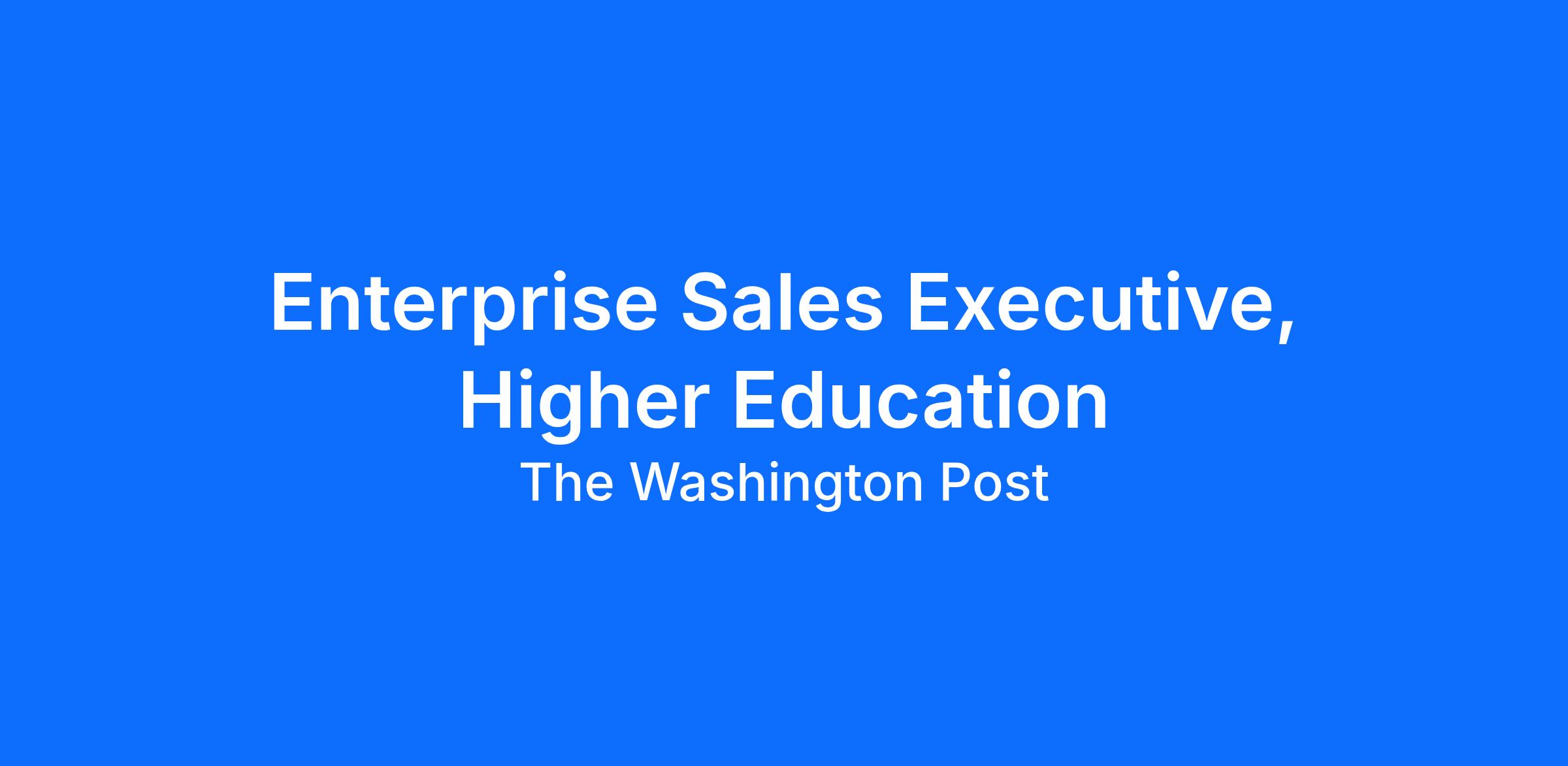 The Washington Post is looking for an Enterprise Subscriptions Sales Executive who will be responsible for the full sales cycle and closing new business deals, providing Enterprise access to The Washington Post for higher education clients. This position is ideal for individuals with a strong track record in B2B sales and some experience in the education space. Reporting to the Manager of Enterprise Subscriptions, the Sales Executive will be strategic in making the most of the revenue opportunities from higher education institutions.