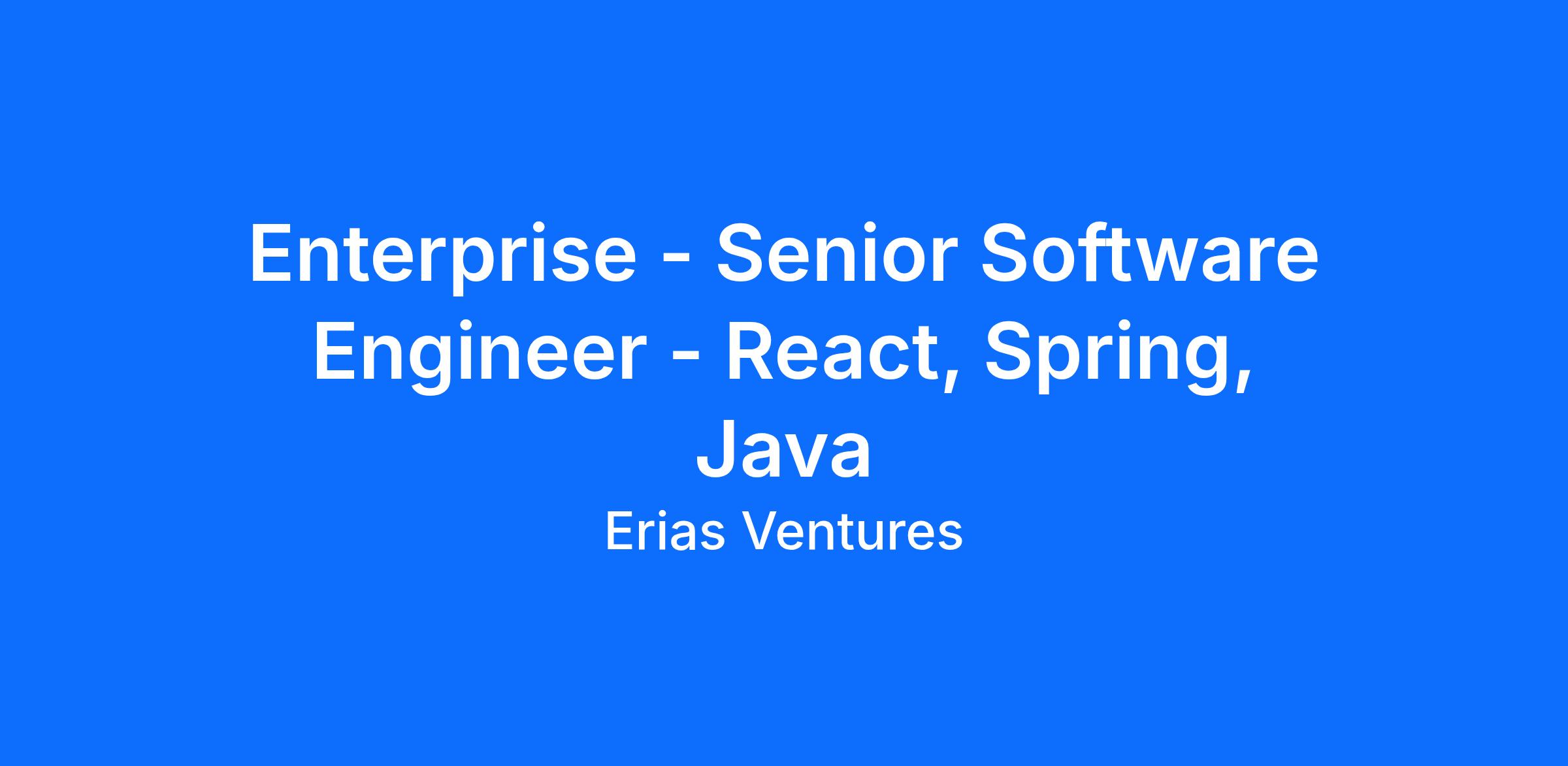 Enterprise - Senior Software Engineer - React, Spring, Java