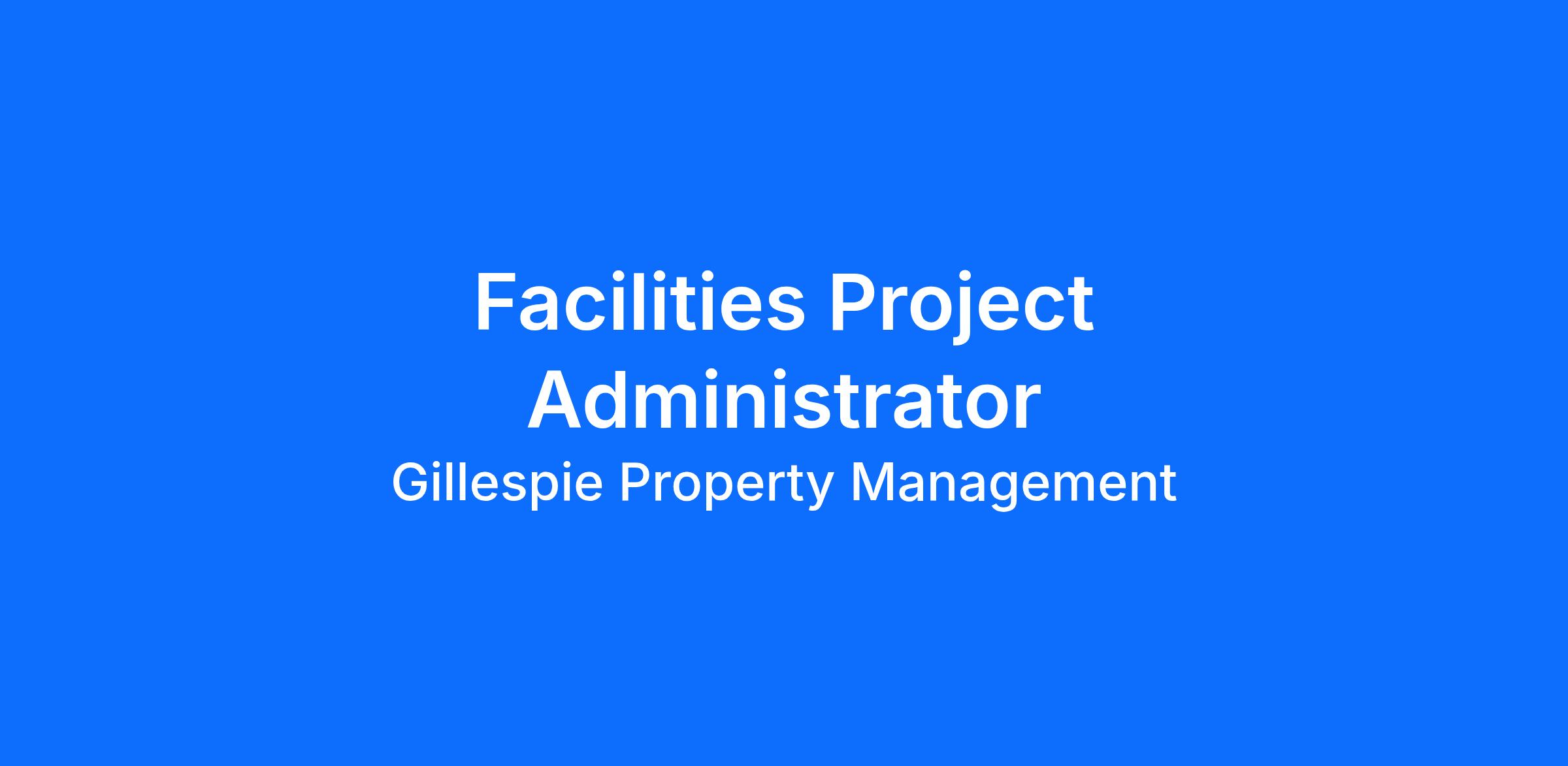 Gillespie Group, a real estate developer and property management company, is hiring for a project administrator to support our Facilities and Maintenance team! The ideal candidate has at least 3+ years supporting a facilities, maintenance or construction department with office administration, project scheduling, compliance oversight and vendor communication.