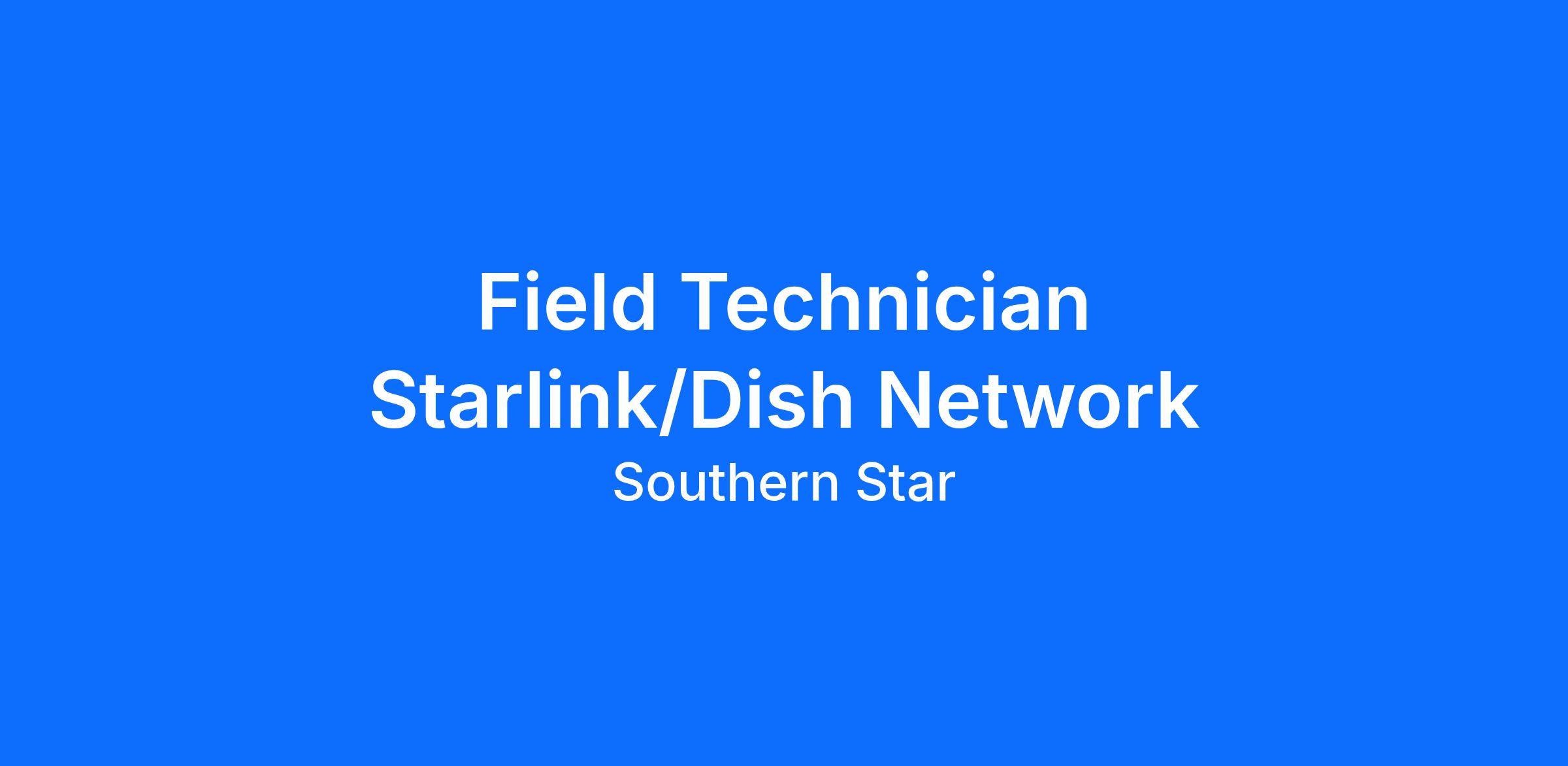 About Us: At Southern Star, we are the driving fulfillment force behind award-winning DISH TV, cutting edge Starlink Satellite Internet and innovative home entertainment and security products. As a Southern Star technician, you will be more than a service provider; you will be a technology ambassador, enhancing the way customers interact with technology.