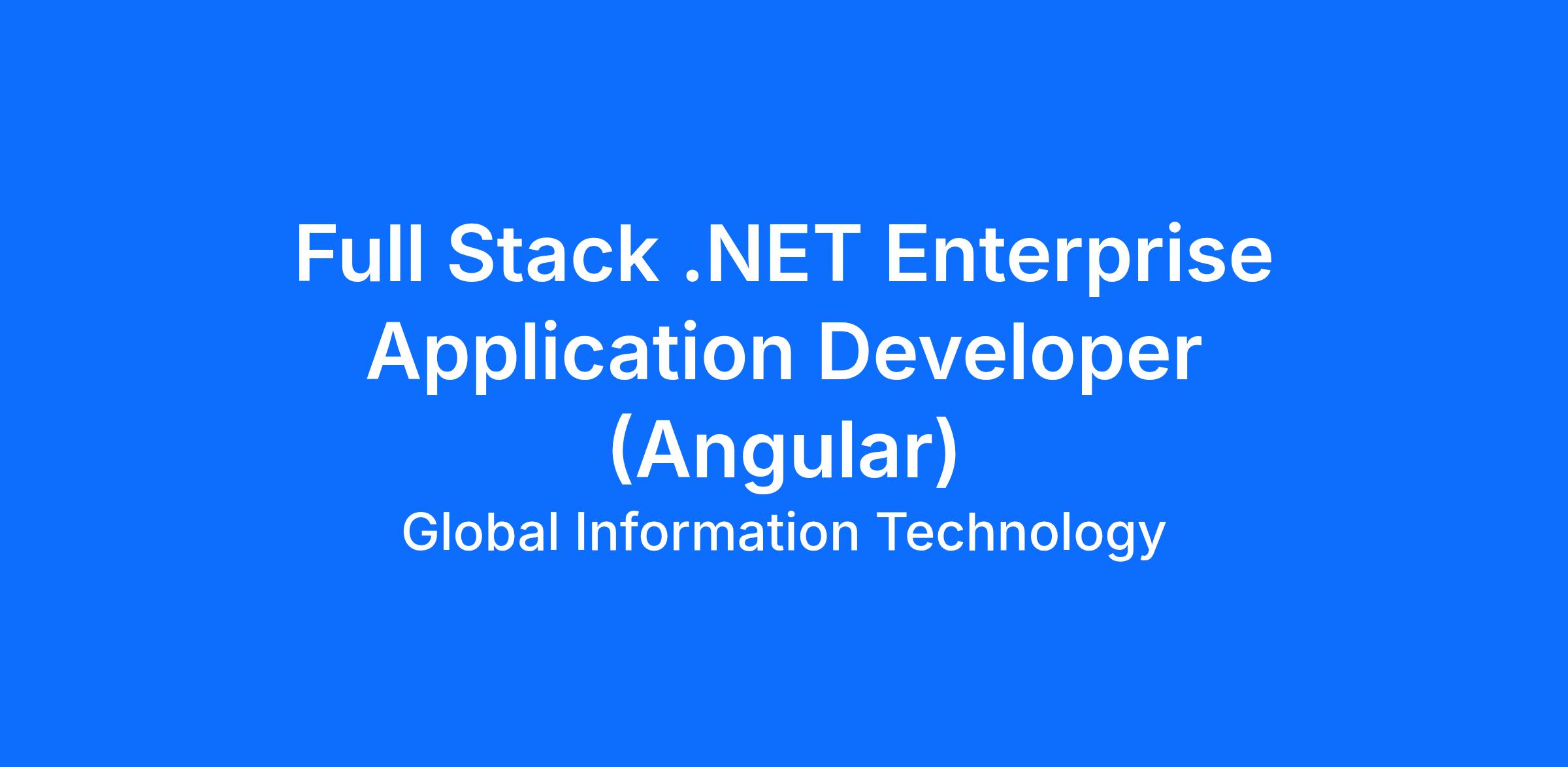 Job Title: Full Stack .NET Enterprise Application Developer (Angular)