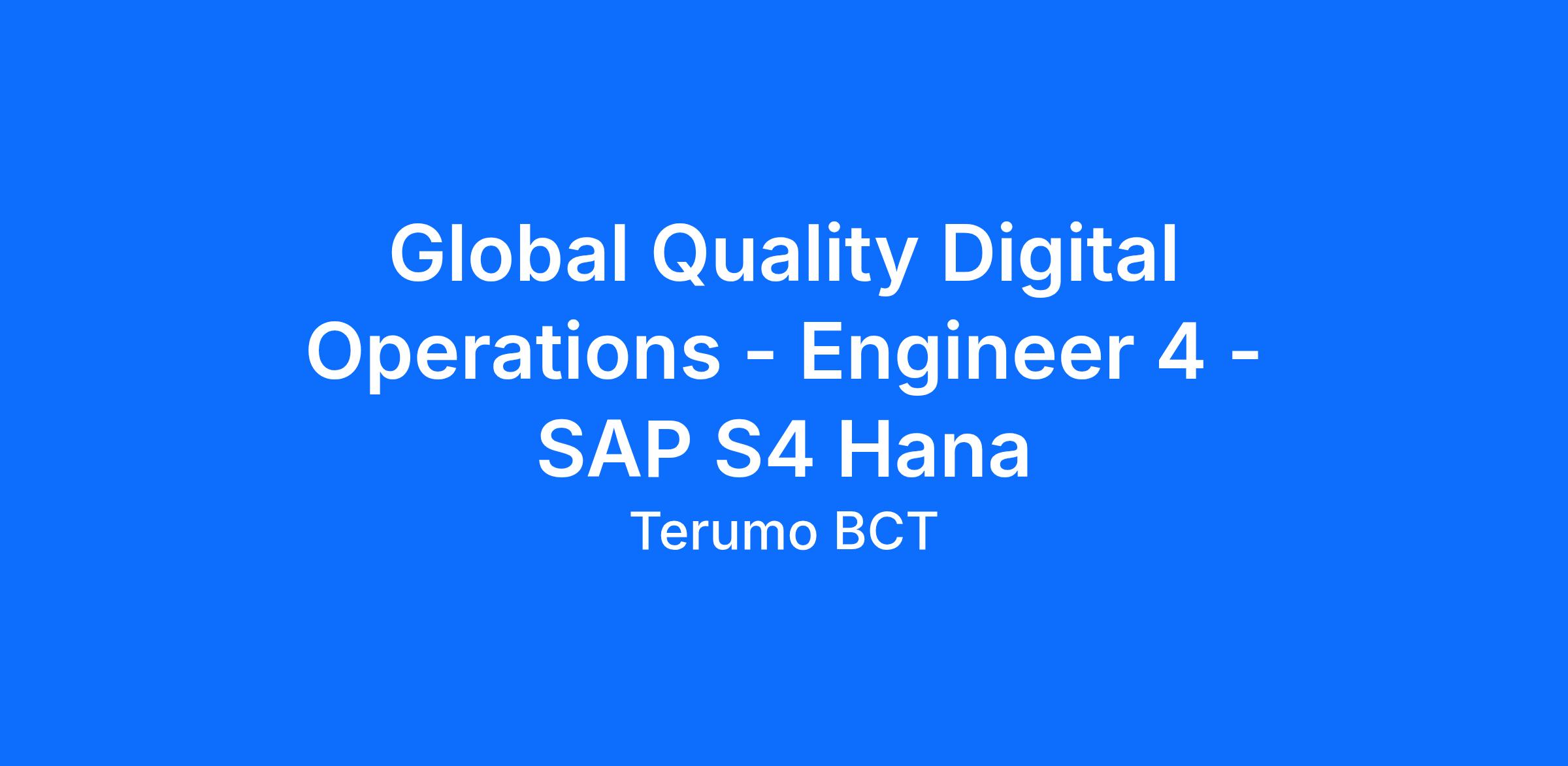Global Quality Digital Operations – Engineer 4 – SAP S4 Hana