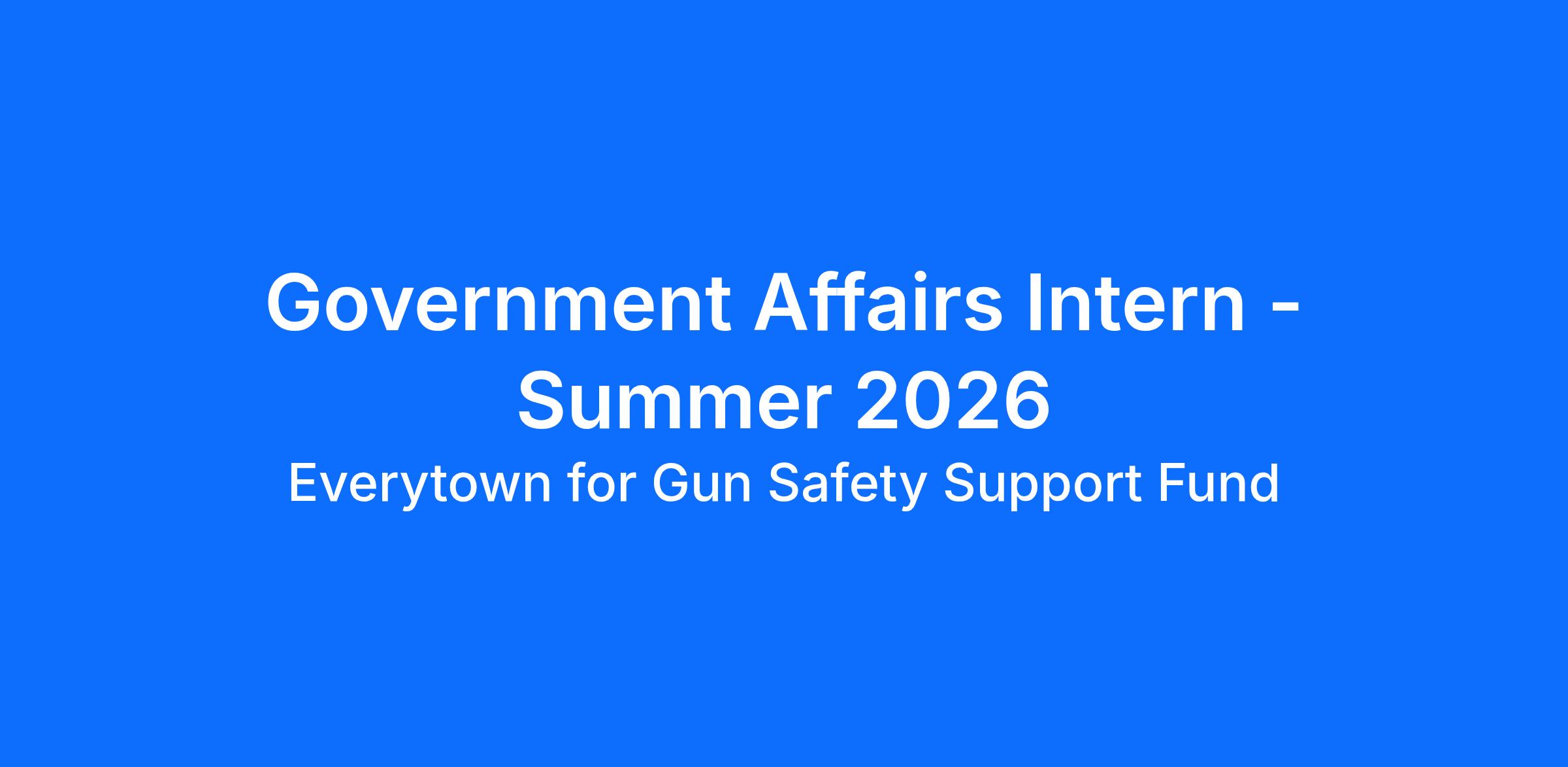 <div><div><div><p data-pasted="true" dir="ltr" style="line-height:1.2;margin-top:0pt;margin-bottom:0pt;"><span style="font-size: 16px; font-family: arial, sans-serif; color: rgb(0, 0, 0); background-color: transparent; font-weight: 400; font-style: normal; font-variant: normal; text-decoration: none; vertical-align: baseline; white-space: pre-wrap;">Everytown for Gun Safety, the nation’s largest gun violence prevention organization, is seeking a </span><span style="font-size: 16px; font-family: arial, sans-serif; color: rgb(0, 0, 0); background-color: transparent; font-weight: 700; font-style: normal; font-variant: normal; text-decoration: none; vertical-align: baseline; white-space: pre-wrap;">Government Affairs Intern</span><span style="font-size: 16px; font-family: arial, sans-serif; color: rgb(0, 0, 0); background-color: transparent; font-weight: 400; font-style: normal; font-variant: normal; text-decoration: none; vertical-align: baseline; white-space: pre-wrap;">. The Governme...