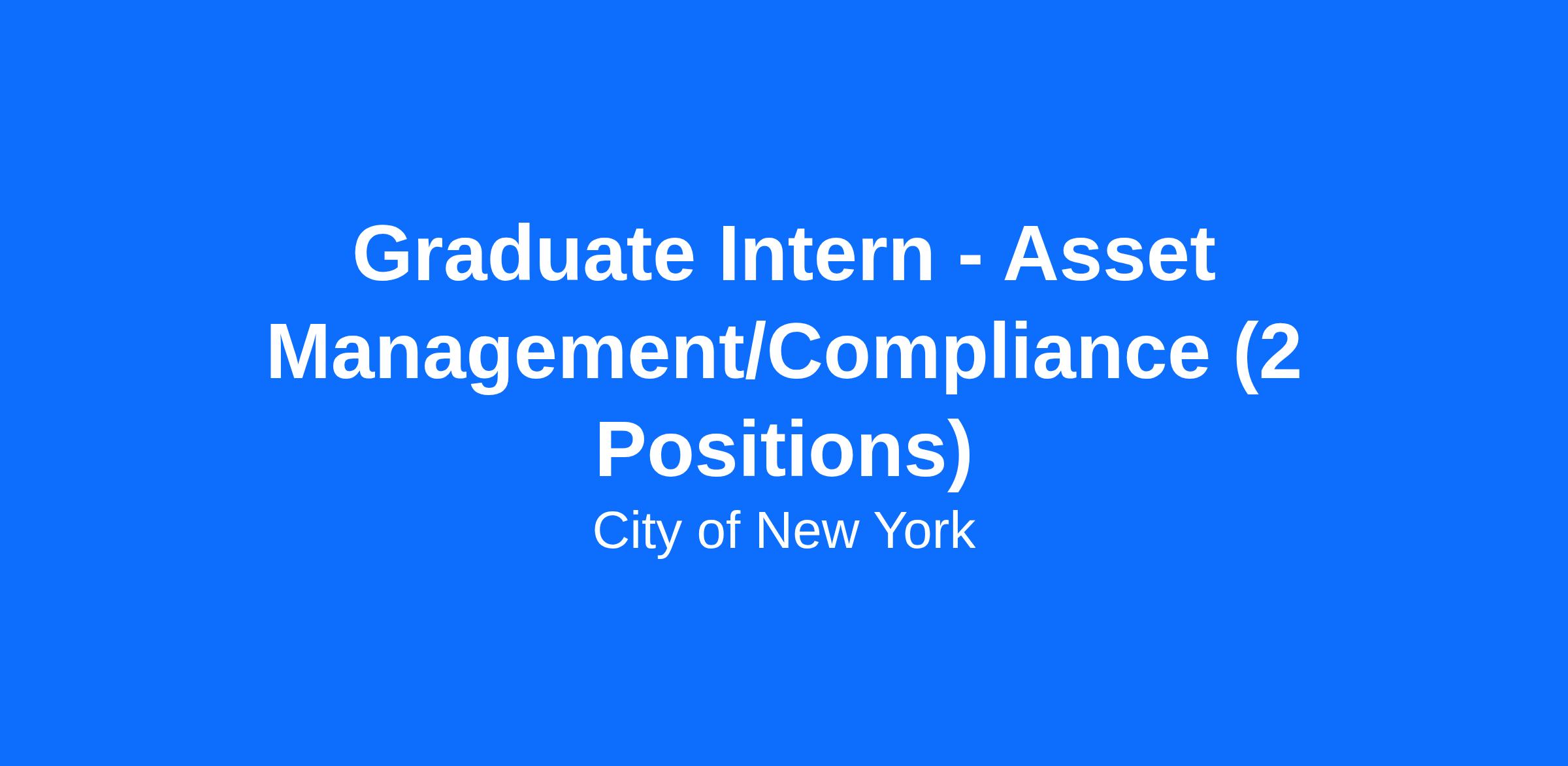 QUALIFICATION REQUIREMENT: Matriculation at an accredited college. Employment is conditioned upon continuance as a student in college. Applicants must be enrolled in an accredited graduate degree program for the Fall 2026 semester. Please clearly indicate your expected graduation date on your resume. This position is ideal for graduate students pursuing majors/minors in the fields of Business, Finance, Law, Compliance, or related fields.