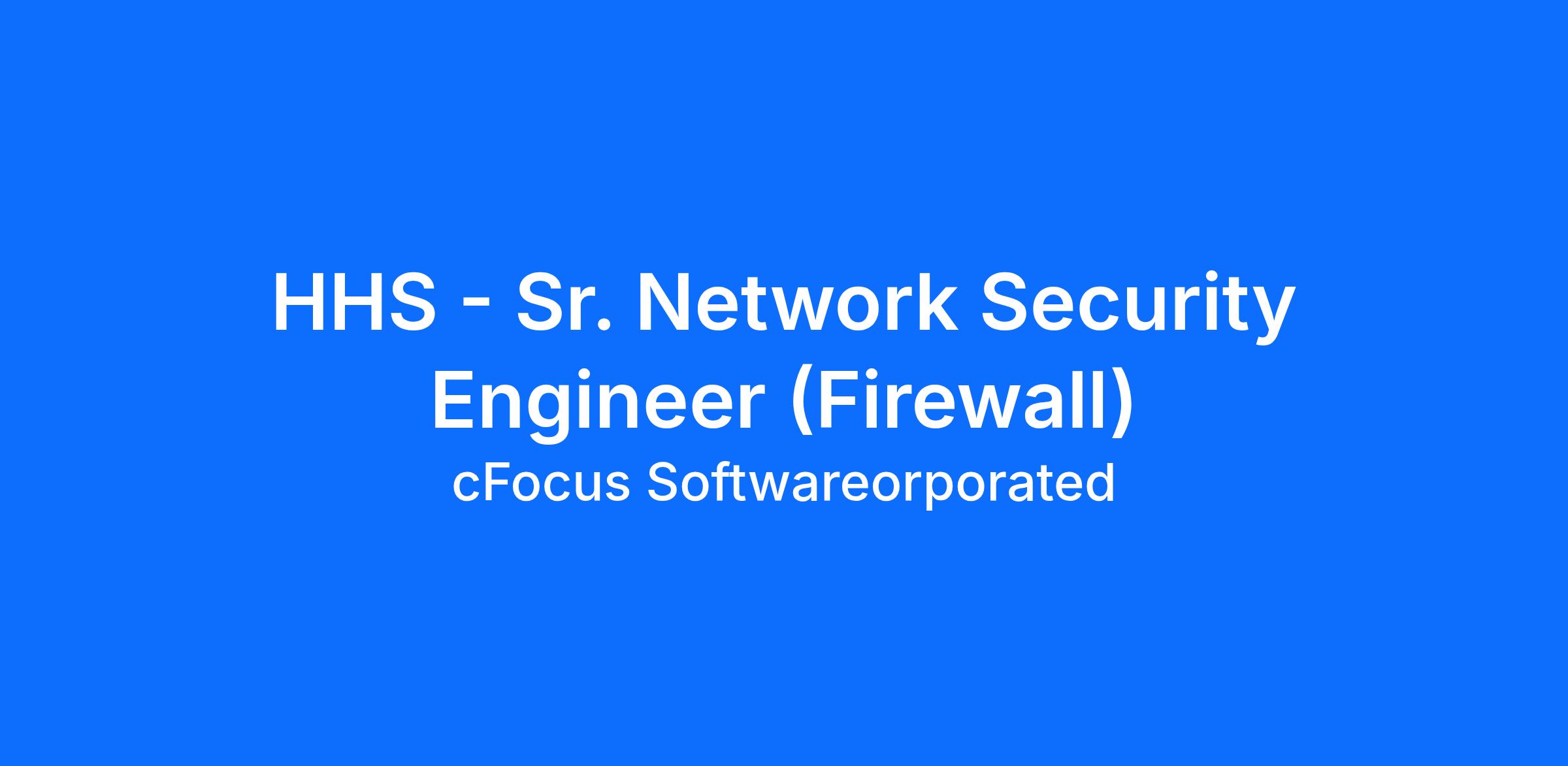 cFocus Software seeks a Sr. Network Security Engineer (Firewall / IDS / IPS / WAF) to join our program supporting the Department of Health and Human Services (HHS) This position is remote. This position requires the ability a Public Trust clearance.Qualifications: