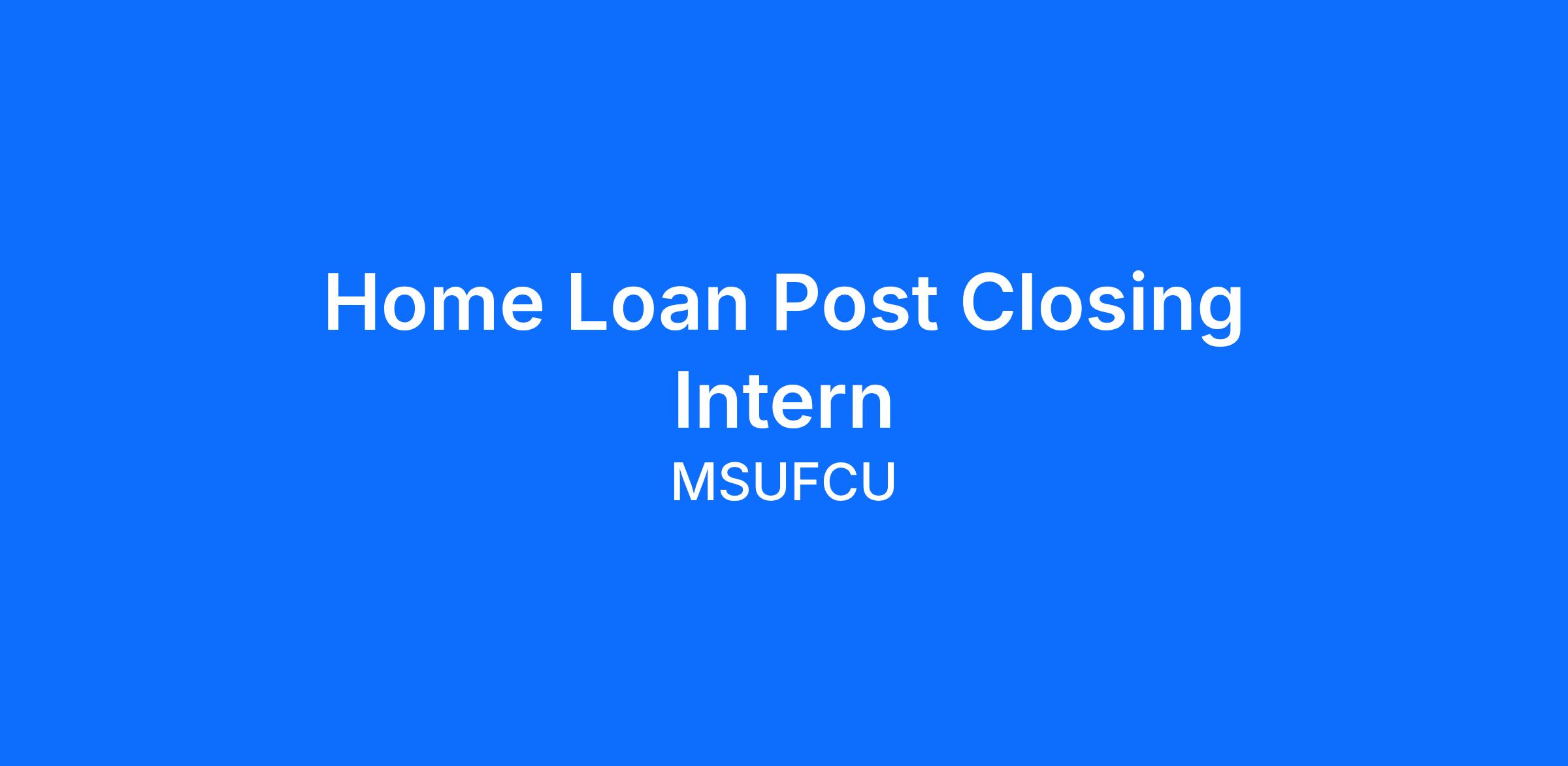 The Home Loan Post Closer Intern plays a key role in assisting with reviewing signed closing documents for completeness, accuracy and proper documentation. They also set up home loans in the servicing system, set up payment options, send welcome emails to borrowers, and follow proper steps to ensure activation of PMI, when applicable. This internship will offer a look into the mortgage and home equity lending industry and offer real world experience.