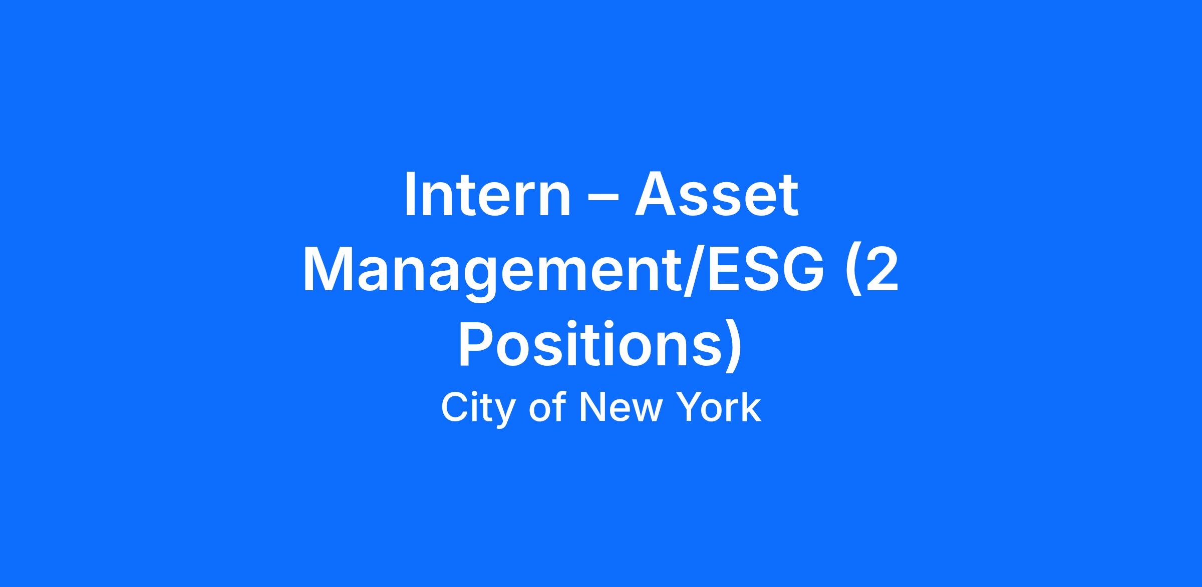 Responsibilities of the Asset Management/ESG Intern include, but are not limited to: