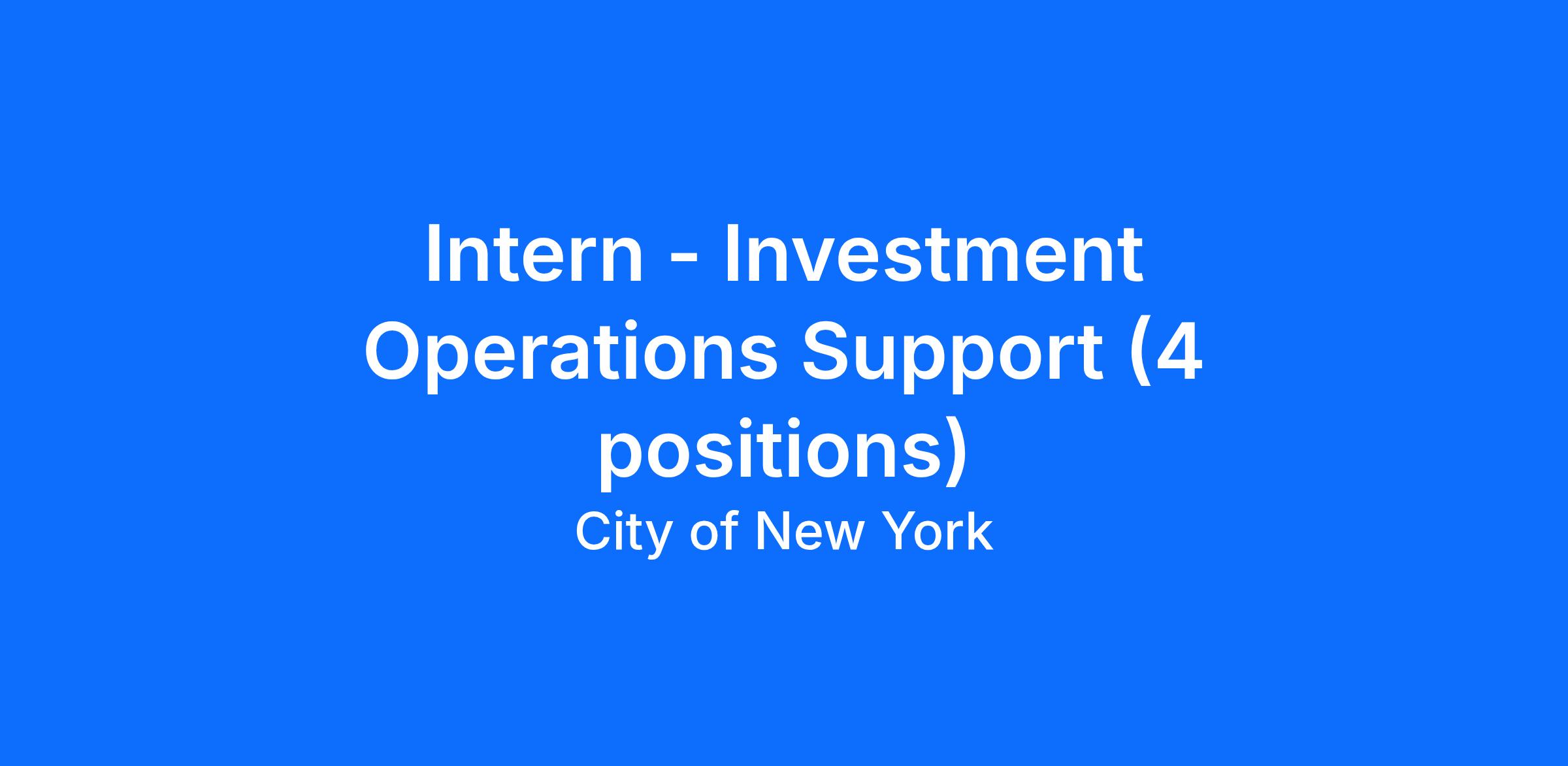 Responsibilities of the Investment Operations Support Intern include, but are not limited to: