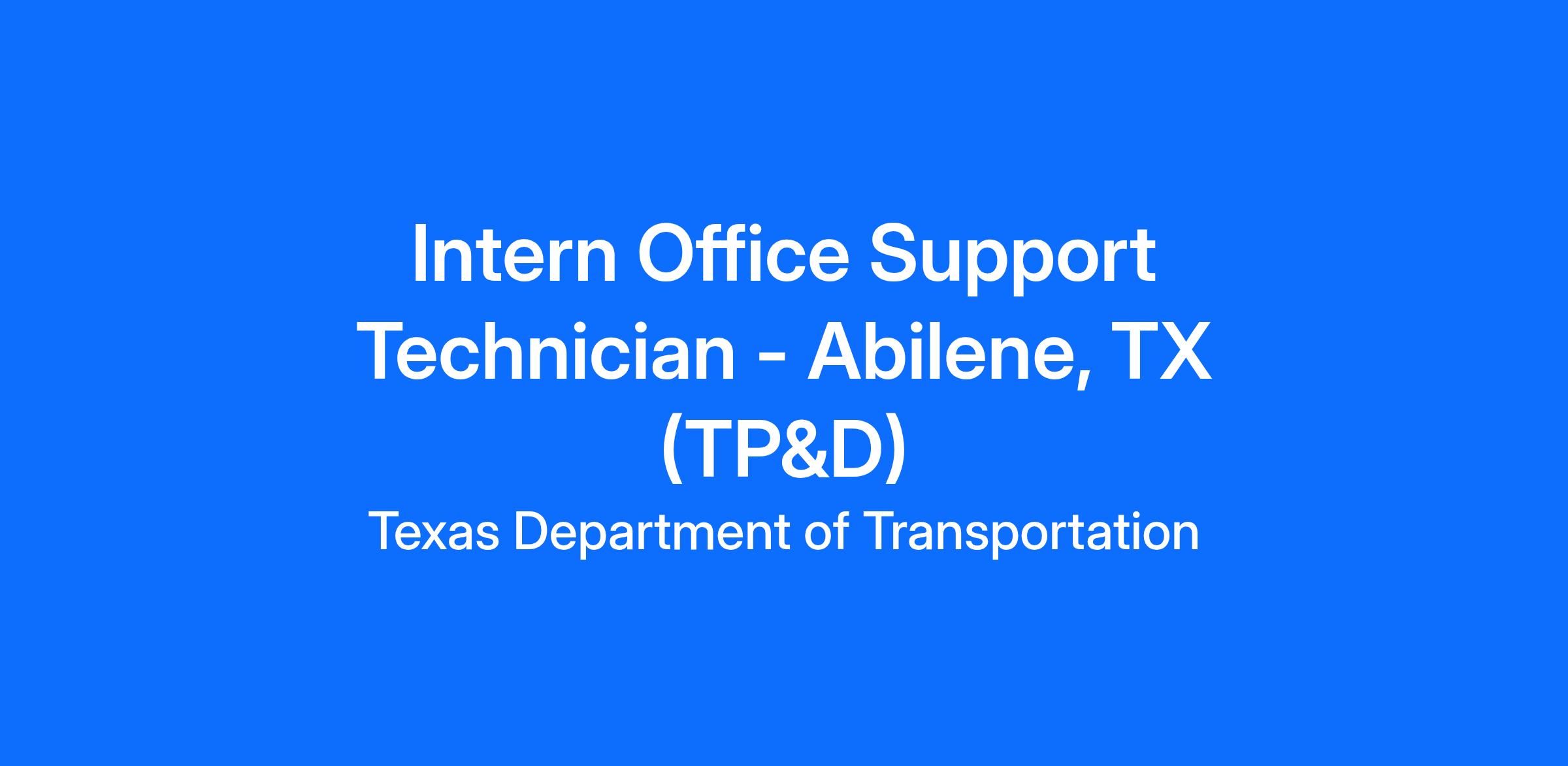 Intern Office Support Technician - Abilene, TX (TP&D)