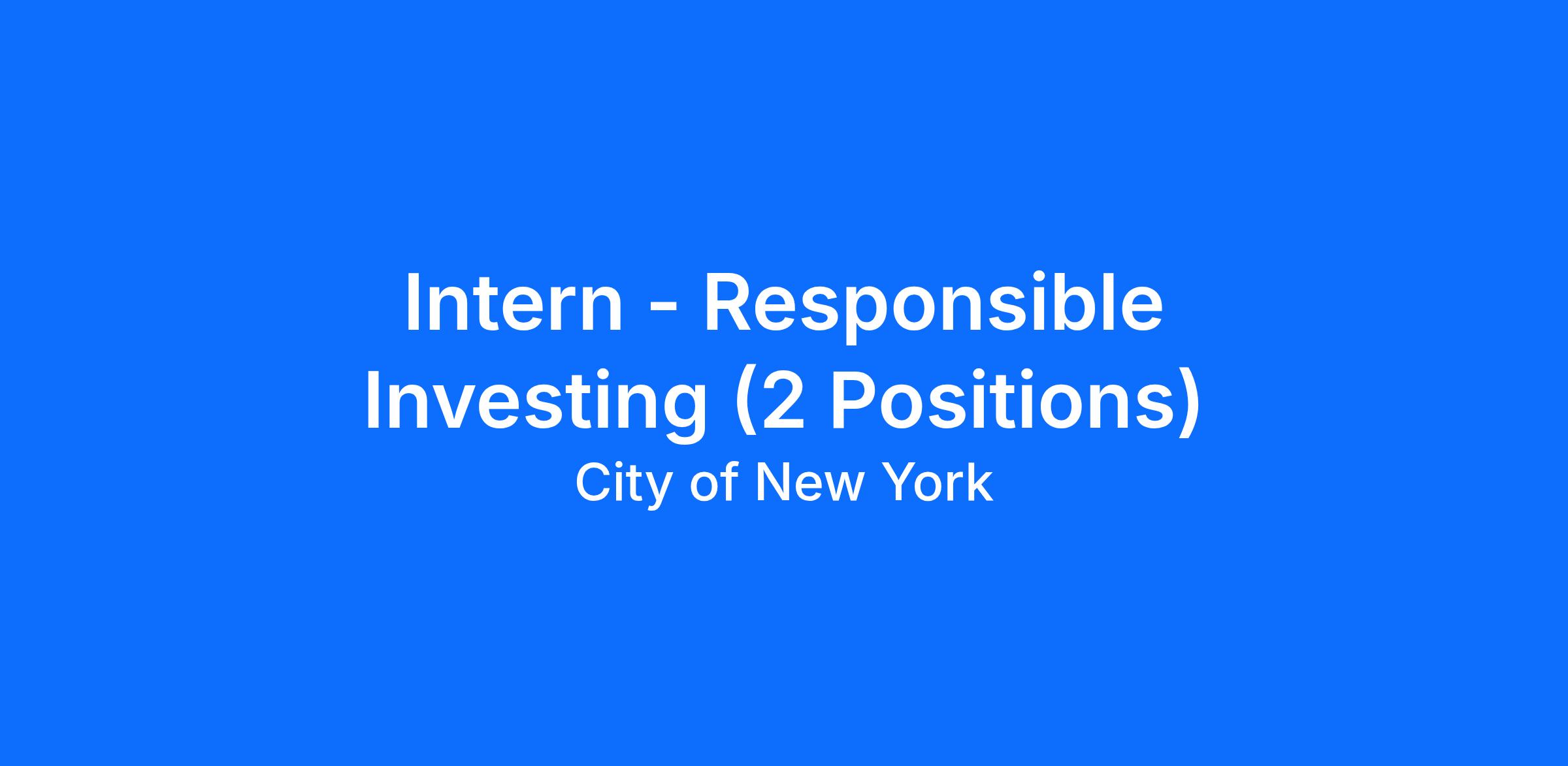 Responsibilities of the Responsible Investing Intern include, but are not limited to: