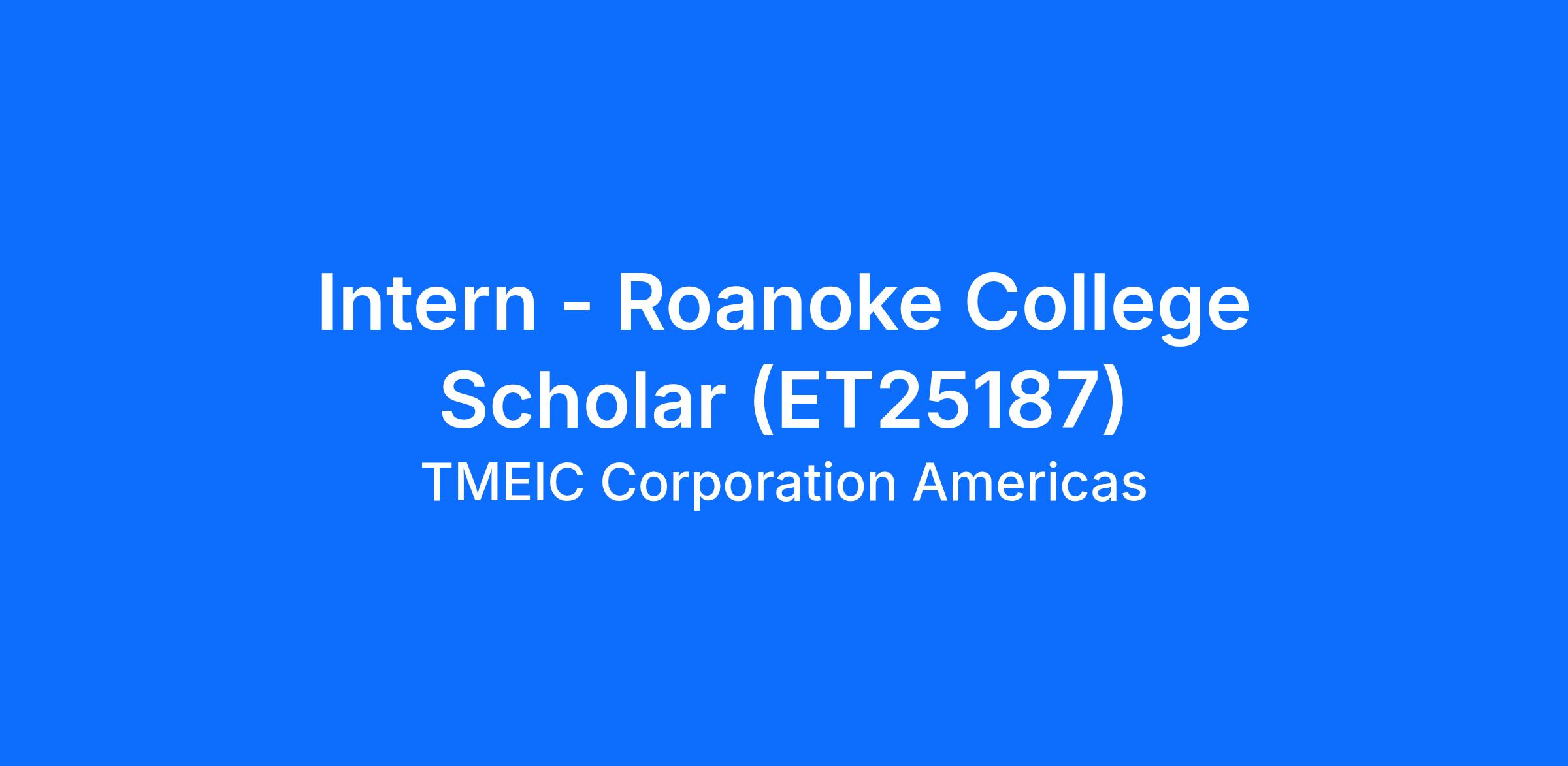 This position is for Roanoke College Scholars candidates. To be considered for the role, please apply through both the Roanoke College Scholar Form at the following link https://forms.office.com/Pages/ResponsePage.aspx?id=V_HngC7RCk681qKs809BhcR2UilvhJJOubF6l8ksPDRUN01KR1JHNTI5WDBNVUVRWTNKUzAxWkVBSi4u and at https://www.tmeic.com/