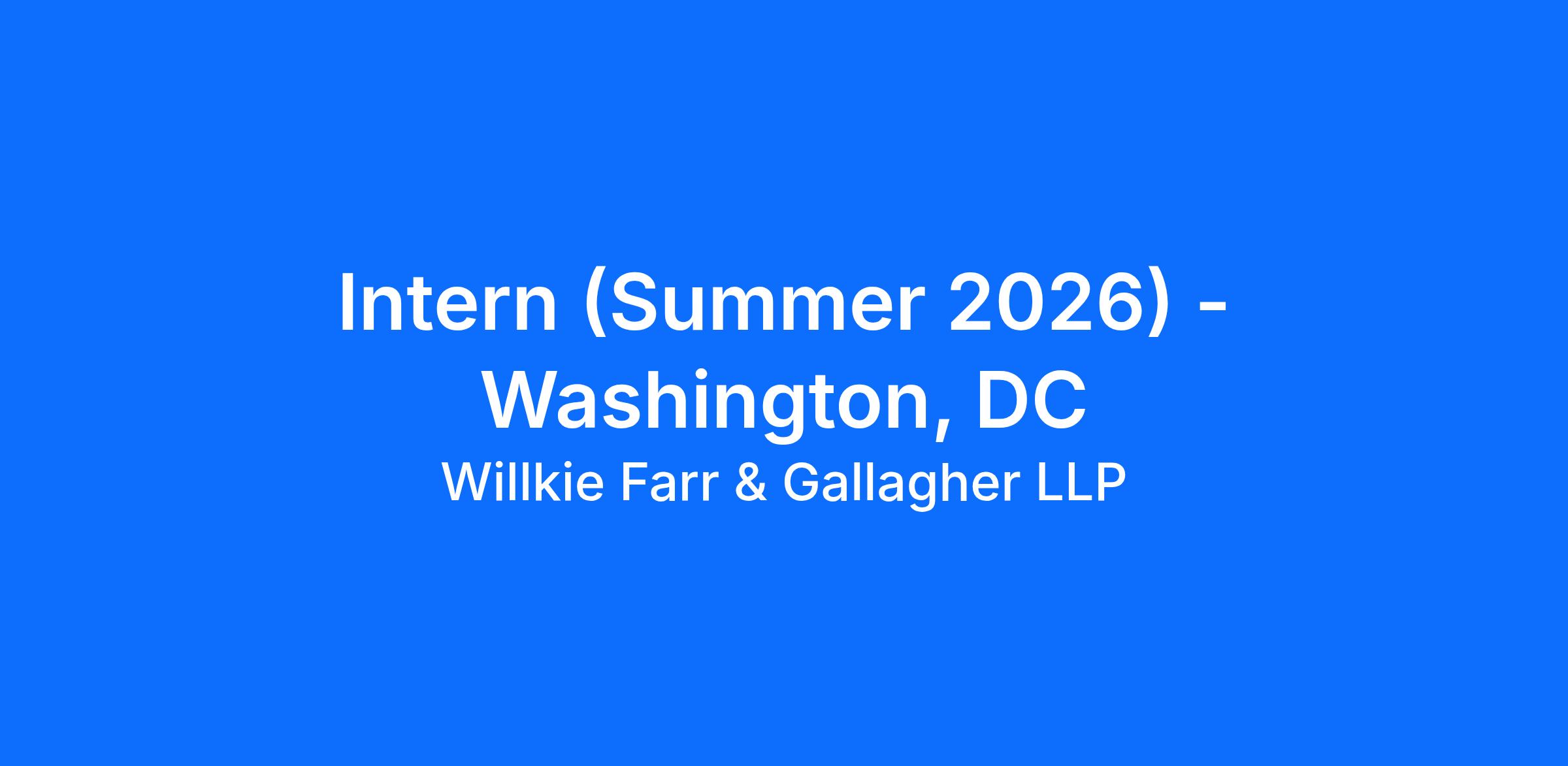 The Washington, DC office Willkie Farr & Gallagher is looking to hire Interns to be a part of our 2026 Summer Internship Program. Willkie is an elite international law firm of approximately 1,300 lawyers located in 16 offices in six countries.