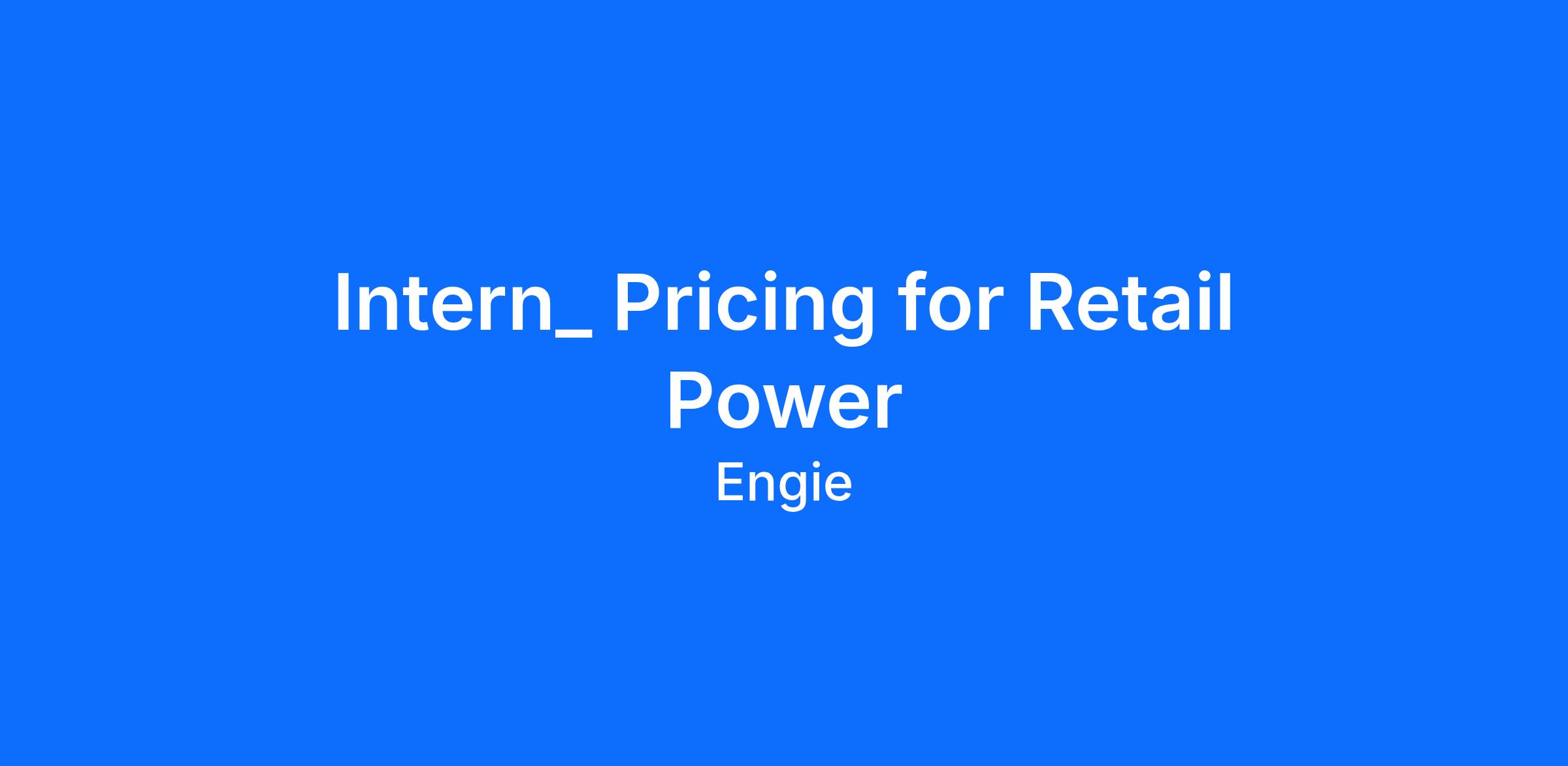As our Pricing for Retail Power Intern, you will gain hands-on experience with key business systems to develop an understanding of power pricing. You will support the pricing process, assist in product design, and help deliver retail pricing solutions to customers. Throughout the internship, you will also build tools to analyze electricity markets and demonstrate the value of ENGIE’s product offerings. This role is ideal for a self-motivated individual with a strong interest in pursuing a career in Finance or Risk Management. The internship provides an opportunity to further develop professional skills in applied finance, analytics, product design, and load analysis.