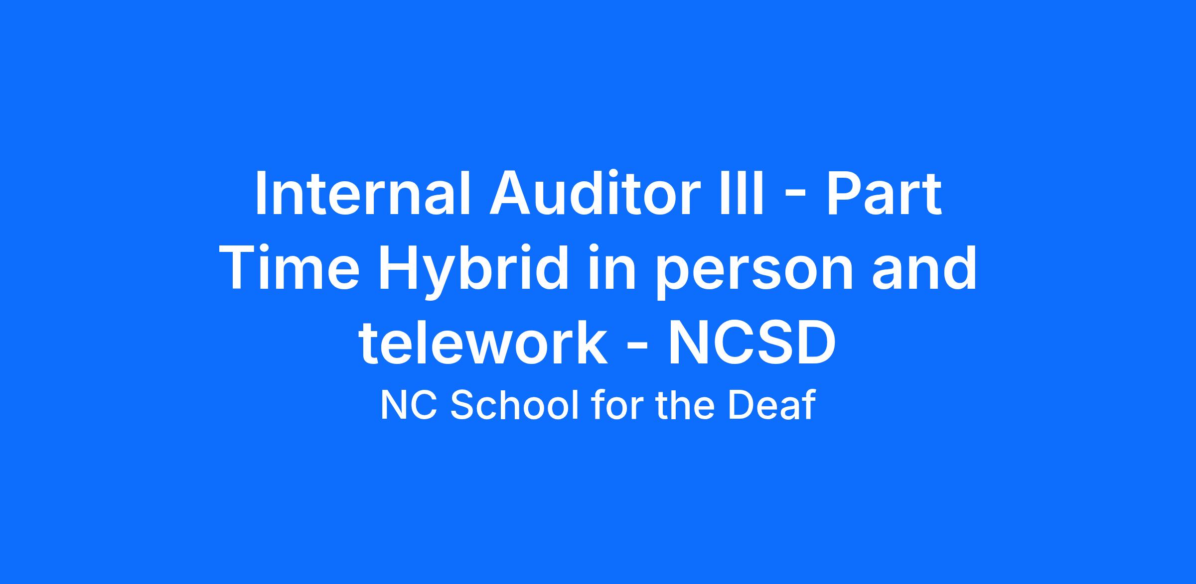 Internal Auditor III - Part Time Hybrid in person and telework - NCSD