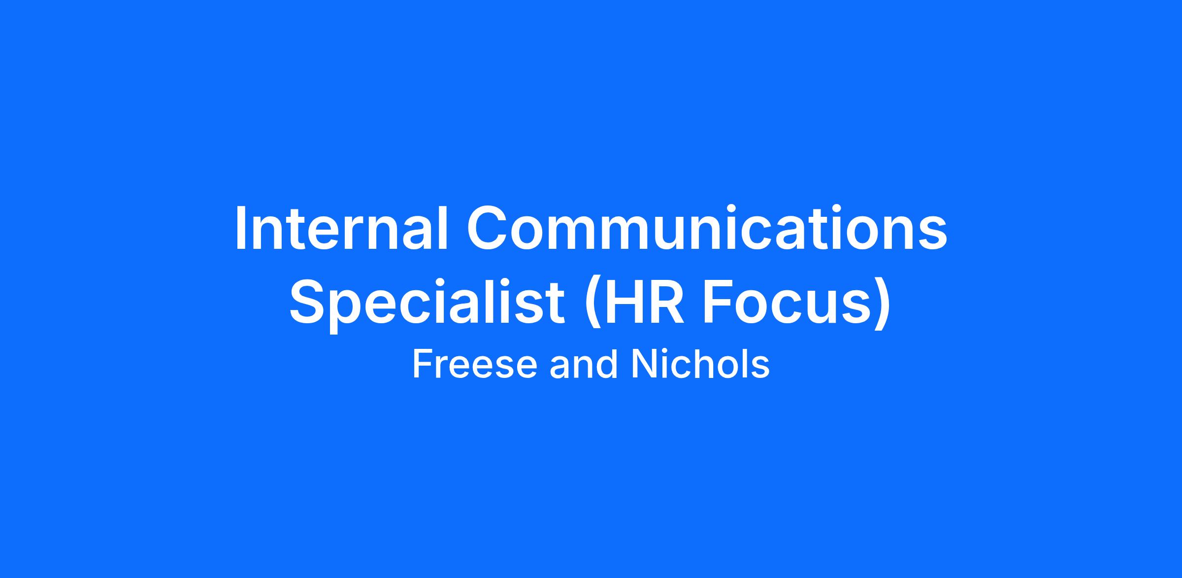 Freese and Nichols is seeking an Internal Communications Specialist to lead how we communicate about benefits, career development, wellness and other people-focused topics. You will be a member of the corporate PR/Communications team and work closely with Human Resources leadership to shape messaging, identify communication needs and drive campaigns that engage our 1,400 employees.