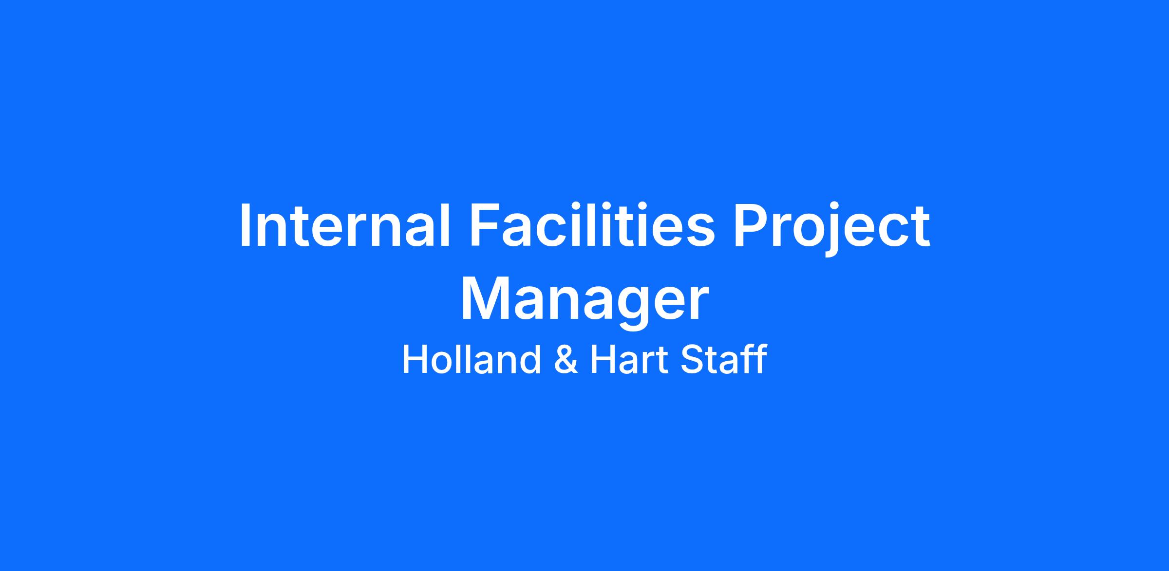 The Internal Facilities Project Manager works closely with the Director in planning & design, cost review, and construction of new or renovated space for all Holland & Hart locations. They assist the Director in planning and coordinating vendors, and implementing assigned departmental policies and procedures. This role is responsible for the preventative maintenance of facilities and equipment in all office locations and will advise and assist with maintenance in all locations.