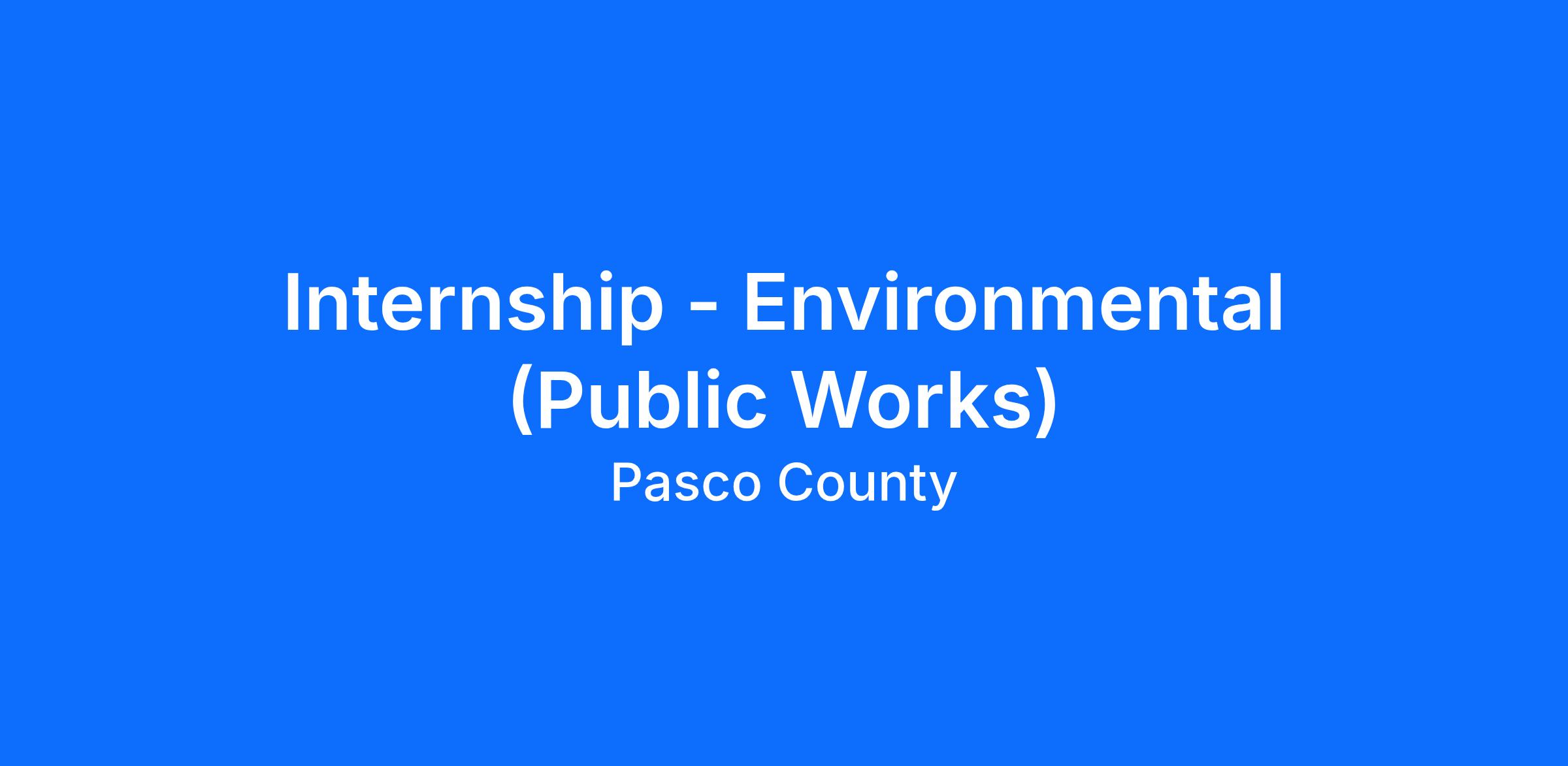 Interns for the Pasco County BOCC Government – Department of Public Works Environmental Division will embark on an internship that will provide students the opportunity to apply knowledge and skills gained from the classroom in a hands-on, professional environment. They will assist in researching and conducting special projects as assigned. We offer two focus areas dependent on experience: